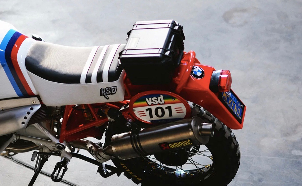 L’elenco degli altri componenti selezionati per confezionare la RSD Dakar GS è tale da mandare in visibilio gli amanti dei dettagli, a partire dal mono ammortizzatore, a sua volta firmato Öhlins. Le ruote sono Excel da 18 e 21 pollici e calzano pneumatici Dunlop D908RR Rally Raid. Il paracoppa in alluminio è della Touratech, mentre i paracilindri sono della SW-Motech. Gira e rigira, a subire le modifiche meno radicali è il motore, lasciato comunque libero di respirare più liberamente grazie a filtri K&N e a uno scarico Akrapovic. La RSD Dakar GS ispira anche una capsule collection di capi d’abbigliamento e accessori a tiratura limitata.