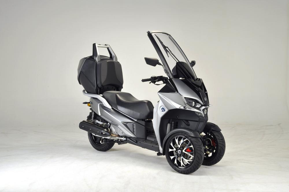 Adiva è un’azienda italiana con sede a Benevento: in catalogo ha l’AD1, presentato nel 2017 all’EICMA. Scooter a tre ruote con sospensione anteriore a quattro braccetti indipendenti (e ammortizzatore centrale), sfrutta un motore di derivazione Peugeot, monocilindrico a quattro tempi da 190 cc con 19 cv di potenza a 8.500 giri. Pesa relativamente poco, 204 kg a secco, e offre l’unicità del tetto rimovibile: con poche semplici mosse si ripone nell’ampio bagagliaio senza essere smontato. Ha la pedana piatta, un plus non indifferente, ed è venduto a un prezzo ragionevole.
