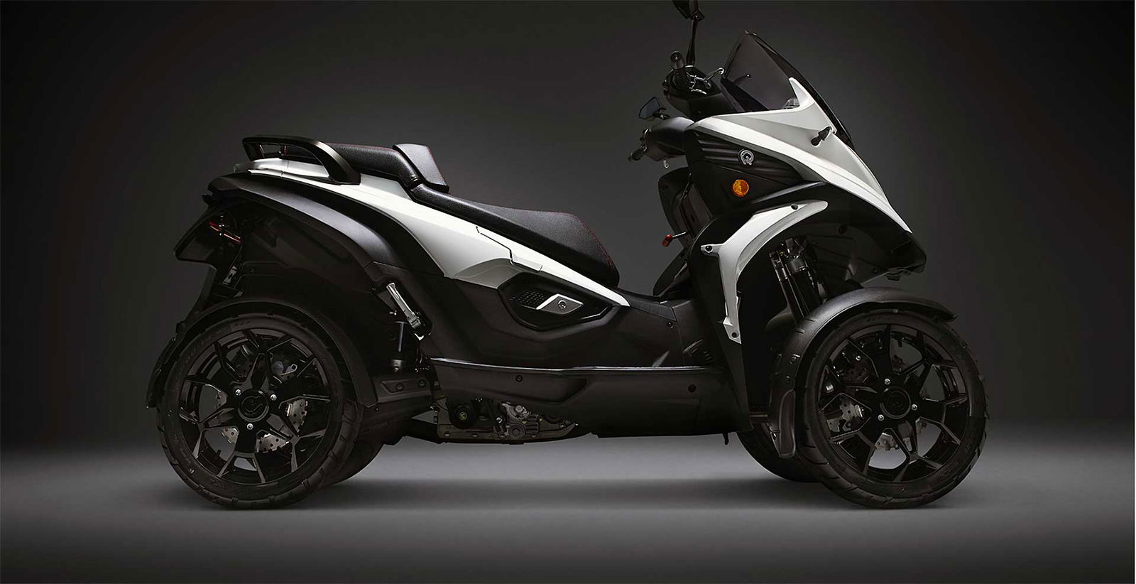 Merita una citazione anche se di ruote ne ha 4. Grazie a un sistema di basculamento particolarmente leggero, Quadro ha pensato di aggiungere una ruota, realizzando il primo quattro ruote basculante al mondo. Il Qooder si guida con patente B ed è motorizzato con un monocilindrico 400 cc montato centralmente e capace di 32,5 cv di potenza. Tutte le ruote sono da 14″, ci sono due forcelloni e un differenziale integrato. Si guida come una moto e bascula arrivando a pieghe di 45°.