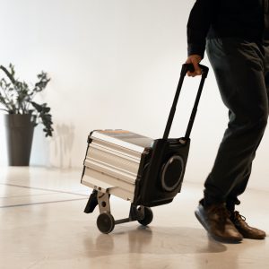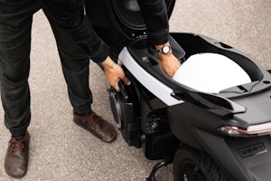 I tempi di ricarica? Circa 5 ore e non serve una colonnina. O meglio: la batteria del MÒ non supporta potenze di ricarica superiori a quelle di una presa domestica. Siccome però la capacità della batteria non è certo quella di un’auto, secondo noi va bene così. A proposito di batteria, il colpo di genio dello scooter spagnolo sta nel fatto che il pacco degli accumulatori si possa rimuovere e trasportare come un trolley (anche perché non pesa poco: 37 kg), grazie a due ruote che fuoriescono in automatico quando lo si asporta dal proprio alloggiamento. Una soluzione perfetta se si parcheggia lo scooter lontano da una presa di corrente.