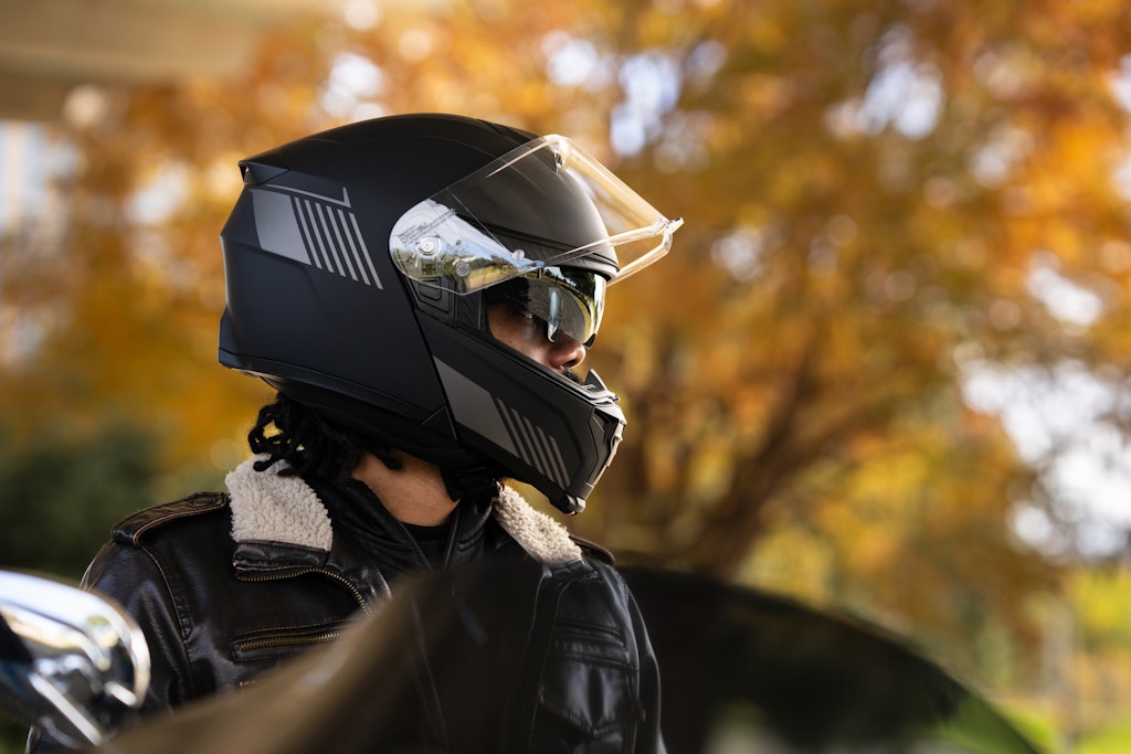 La stessa logica di integrazione si applica anche alla sicurezza. Specter è dotato di luce posteriore integrata, che migliora la visibilità del motociclista in condizioni di traffico intenso o scarsa luminosità. In fase di frenata, la funzione stop aumenta ulteriormente la percezione da parte degli altri utenti della strada, in particolare in ambito urbano o notturno. Dal punto di vista costruttivo, Specter adotta una calotta in fibra di vetro composita, integra una visiera parasole ed è compatibile con Pinlock