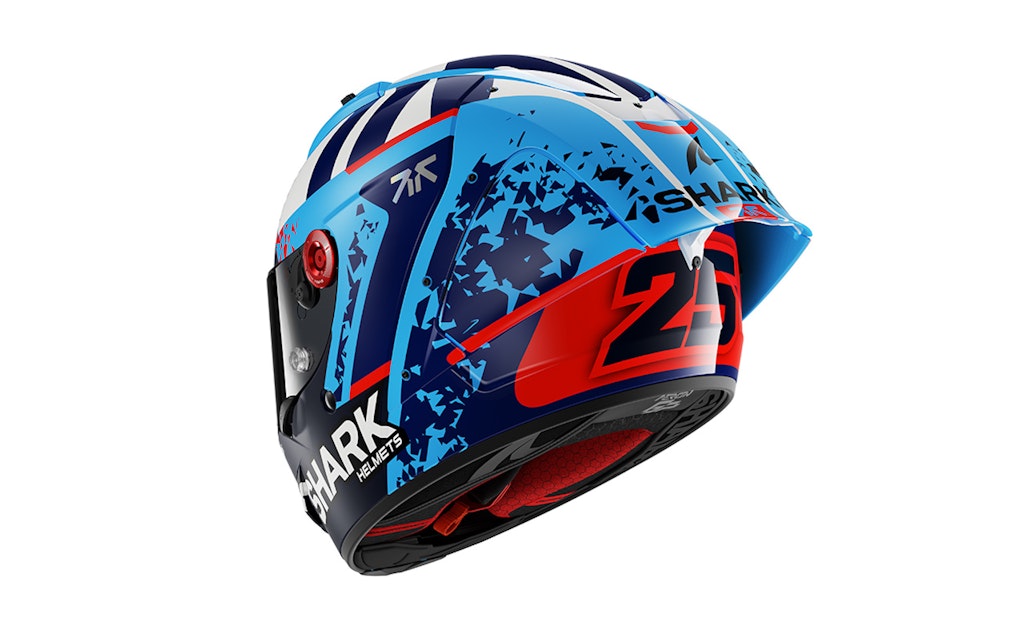 Dalla stagione MotoGP 2026 tutti i piloti ufficiali Shark utilizzano l’Aeron GP omologato FIM #2, inclusi Johann Zarco e Raúl Fernández (qui sopra proponiamo la versione grafica dell’Aeron GP dedicata al pilota spagnolo). Le taglie disponibili vanno dalla XS alla XXL, nella versione di lancio Carbon Skin (nuove grafiche sono previste nei prossimi mesi). Infine il costo: Shark Aeron GP è in vendita a un prezzo suggerito di 1.199,99 euro.