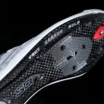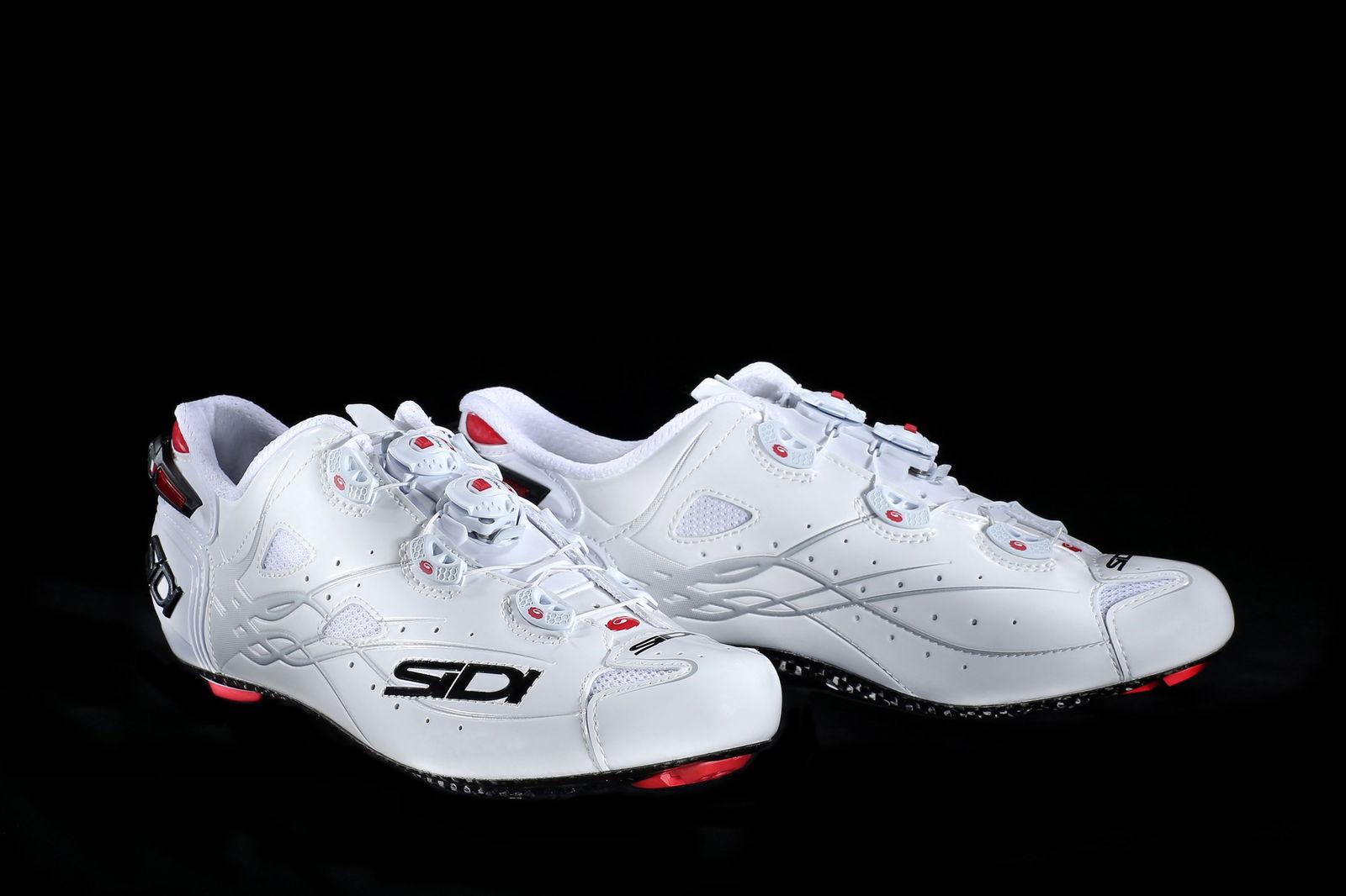 Degna di nota la dislocazione dei rotori Techno 3 Push, deputati a regolare l’intensità della chiusura, posti al centro della tomaia e quindi in grado di lavorare in modo simmetrico. Interessante il sistema di ritenzione posteriore (tallone tecnico regolabile Reflex) che permette di modulare il livello di avvolgimento del tallone. Non manca la possibilità di sostituire il tacco in gomma, soggetto a usura. Le Shot sono in catalogo nelle misure da 40 a 48 e in cinque colorazioni: bianca, nera con inserti bianchi, giallo fluorescente, azzurro, bianca con inserti rossi; le ultime due non sono disponibili in Italia. Il prezzo è di 389 euro. IL GIUDIZIO DI REDChiusura TECNO-3 PUSH SYSTEMI tre punti di aggancio sulla tomaia e le due leve di regolazione consentono di raggiungere un connubio molto efficace tra scarpa e piede. L’estesa modularità del meccanismo di chiusura permette di trovare il livello ottimale di tensione e di modificarlo agevolmente durante l’uso. Basta infatti agire sui pulsanti laterali oppure sui due rotori per allentare o aumentare la tensione di chiusura.Rispetto a modelli Sidi precedenti, risalenti a qualche anno fa e ampiamente diffusi tra i ciclisti, per intenderci quelli con la leva all’altezza del collo e i due strappi in velcro sulla parte anteriore, sulle Shot la sensazione della calzata è molto diversa e decisamente migliore. La tomaia aderisce perfettamente al piede, mantenendolo fermo in qualsiasi condizione di spinta, senza tuttavia comprimerlo.