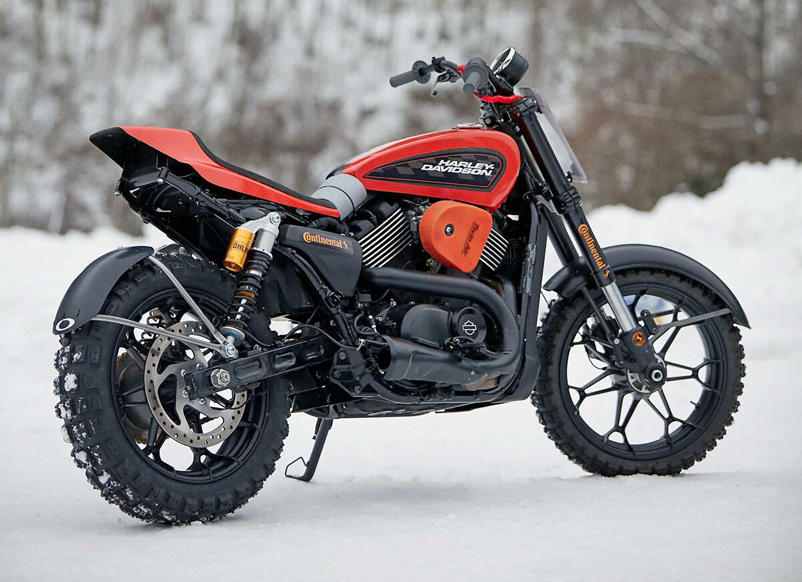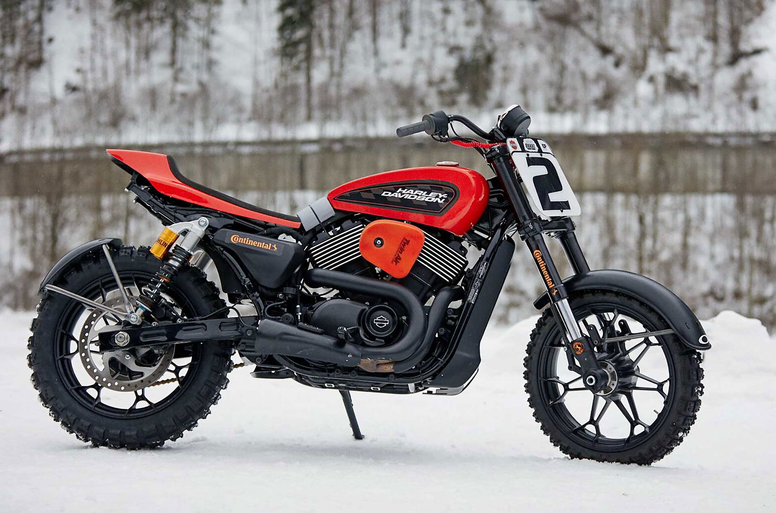 Parto da lontano, perché sembra la storia di Cenerentola. Ovvero parto da quella “Harleyna” lì, Street 750, la più piccola della gamma, quella un po’ snobbata dai duri e puri che al suo arrivo l’avevano quasi emarginata, dandole dell’”indiana”, per poi riammetterla nella sua ultima edizione Street Rod, che offre look “Dark Custom” decisamente più attraente… e non solo per il mondo H-D. Bene, partendo da quest’ultima base è stata derivata questa configurazione flat on ice: così ha acquisito un fascino che… viene voglia di portarsela a casa e andarci per strada, perché è troppo bella. Il suo potenziale come personalizzazione lo avevo già percepito alla sua presentazione stampa 2017 in terra di Spagna, quando vennero esposte una serie di interpretazioni, una più bella dell’altra, che lasciavano presagire le intenzioni del costruttore di proporla come moto oltre i confini canonici. Rivalutando, per altro, lo stile delle leggendarie XR750 che dominavano le gare di flat in america negli Anni 70.STREET ROD 750 ICE TRACK