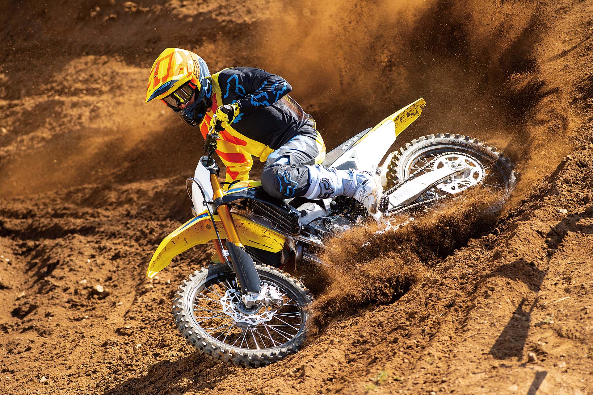 Un’altra importante novità è la GSX-R1000 2019, disponibile oggi in una livrea più racing ed equipaggiata con uno scarico dal profilo ridisegnato. A livello tecnico, la GSX-R1000 2019 si arricchisce del quickshifter bidirezionale, fino a oggi appannaggio della sola versione R. Quest’ultima mantiene come dotazione esclusiva il Launch Control, il Cornering ABS, la forcella Showa BFF e il monoammortizzatore Showa BFRC lite. Per la standard invece arrivano due ulteriori upgrade: tubi in treccia metallica per l’impianto frenante anteriore e una piccola asola nel telaio, che permette di regolare l’altezza del pivot forcellone, per una messa a punto dell’assetto più raffinata. Cambiano anche gli pneumatici di primo equipaggiamento, ora Bridgestone Battlax RS11. Dalla GSX-R1000 prende vita la Ryuyo, la moto pronto gara voluta da Suzuki Italia che ha suscitato molto scalpore e che proprio a EICMA si mostrerà al pubblico.Tra motocross e moto-depo