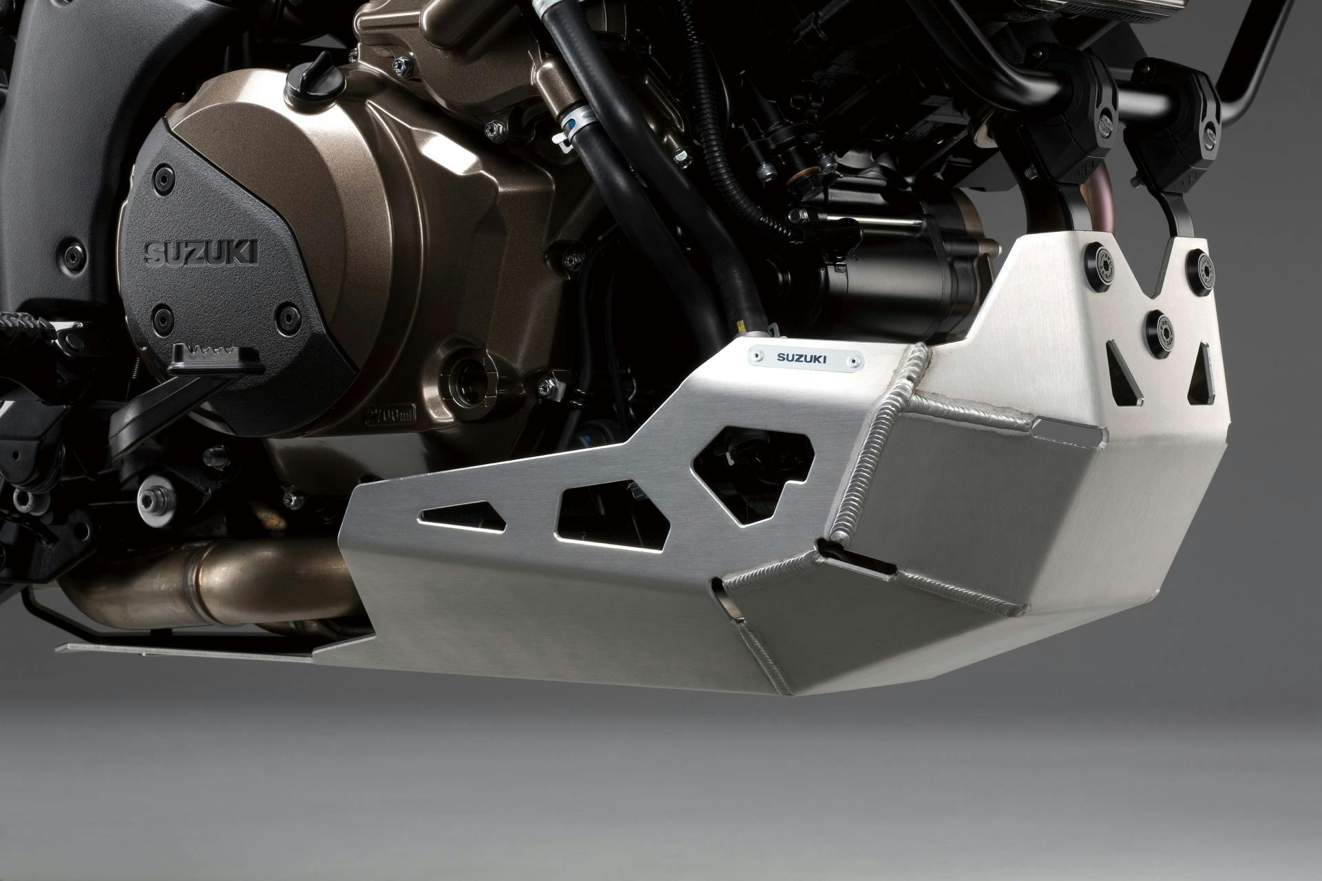 Non serve essere grandi fisionomisti per notare le principali novità della dotazione della Suzuki V-Strom 1050 XT Pro. Il pezzo forte è rappresentato da una coppia di borse in alluminio da 37 litri, fornite alla Casa di Hamamatsu dalla SW-Motech e dotate di serratura. Tra le loro caratteristiche ci sono l’apertura verso l’alto, la tenuta all’acqua e alla polvere e la presenza di comode maniglie, oltre che di inserti in plastica sugli spigoli.