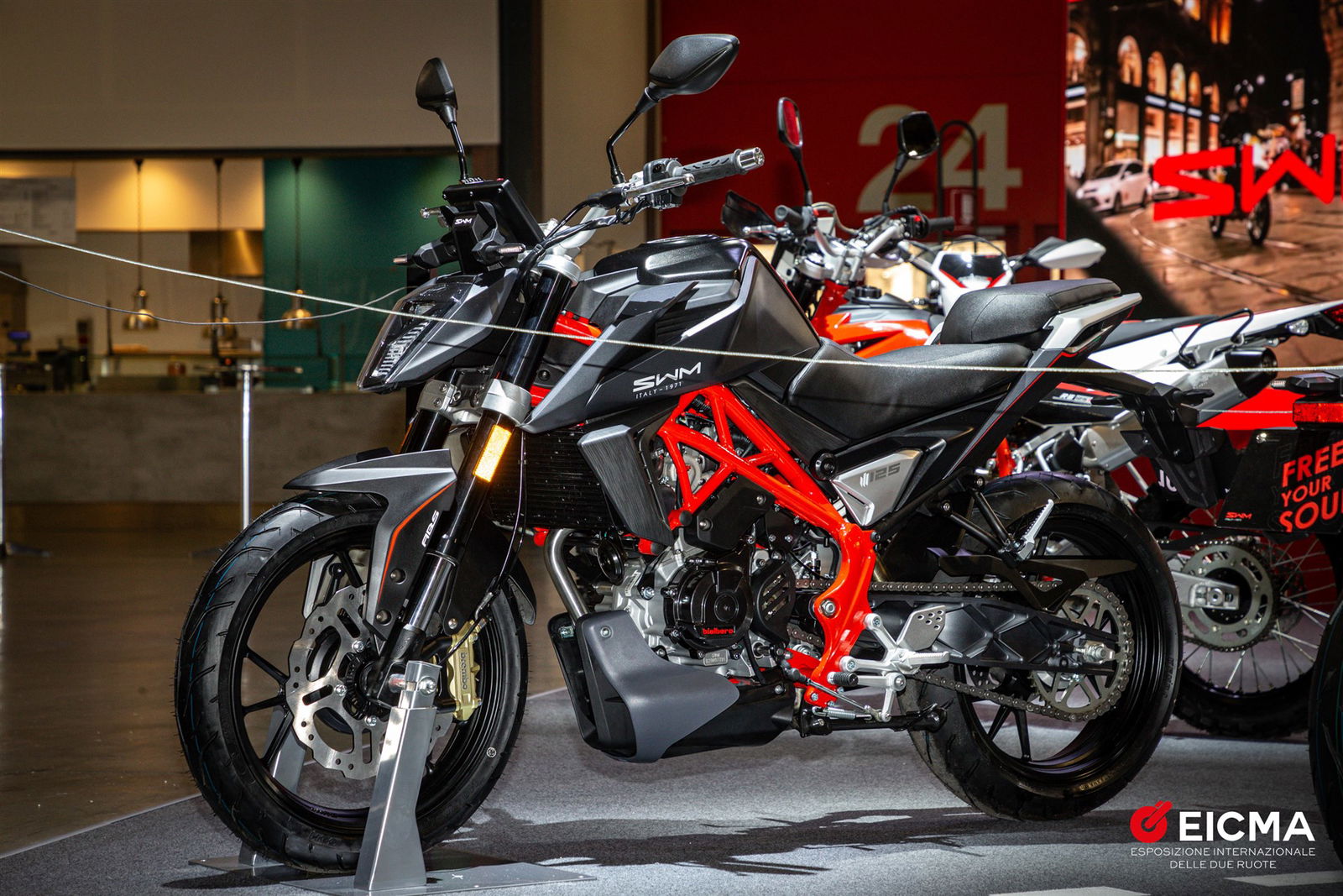 VA è un omaggio alla provincia di Varese, dove SWM ha la sua sede, ed è anche la sigla che identifica la nuova famiglia a cui appartengono le due inedite Naked VA 125 e VA 400 presentate a EICMA. Condividono telaio – un traliccio in tubi di acciaio – e ciclistica, con forcella USD con steli da 41 mm e impianto frenante Brembo. Differiscono invece per la cubatura del motore monocilindrico, 125 cc la piccola e 400 cc la maggiore, e per il peso di 136 kg e 144 kg rispettivamente. Sulla base del modello di maggior cilindrata arriveranno a breve due varianti, una turistica e una sportiva carenata.