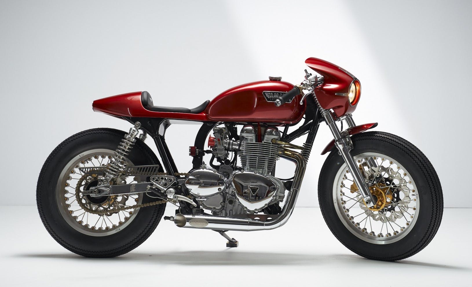 Il team di Tamarit, uno dei più rinomati preparatori spagnoli, con la predilezione per le motociclette Triumph, ha deciso di rendere omaggio alla Mercedes 300 SL degli anni ‘50 e di rappresentarne gli elementi che l’hanno trasformata in un’icona. Su tutti, le curve arrotondate dei fari e le portiere incernierate sopra il tetto, che si aprono verso l’alto. Base di partenza per la realizzazione è stata una Thruxton 900 a carburatori. Risultato, la Gullwing X, una meravigliosa special in edizione limitata.