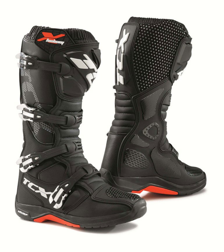 TCX2014-008X-TOUR EVO GORE-TEX®: Come su misuraSi tratta del modello più rappresentativo della linea Touring 2016, una delle collezioni più complete sul mercato per versatilità, innovazione e prezzo. E’ stato ideato per assicurare alte prestazioni di medio e lungo raggio e riassume la filosofia TCX®: tecnologia, comfort e protezione. X-TOUR EVO GORE-TEX®, grazie al nuovo High Performance Fitting System, assicura la massima comodità ed adattabilità attraverso una serie di dettagli che consentono una completa personalizzazione della calzata. La sicurezza è garantita da tutti gli standard tradizionali, a cui si aggiunge una struttura rinforzata nei punti più critici e un innovativo materiale D3O® “shock absorbing” che hanno permesso a questo stivale di raggiungere il più alto livello di certificazione sul mercato. Un dettaglio che può fare la differenza durante la stagione invernale è la fodera GORE-TEX Insulated Comfort Footwear che isola i piedi, conservandoli asciutti e caldi. Per completare questa calzatura tecnologia, TCX ha creato una tomaia in morbida pelle con loghi ricamati.TCX2014-001X-BOULEVARD WATERPROOF Pensato per le donneFra i primi ad intuire le diverse esigenze del mondo femminile sulle due ruote, TCX ha creato dei modelli sia per la donna passeggero, sia per la vera protagonista in moto. X-BOULEVARD WATERPROOF è uno stivale da moto che con i suoi dettagli dettagli ricercati si adatta anche a un utilizzo quotidiano, come il tacco rialzato che, oltre a garantire stabilità, conferisce alla calzatura uno stile grintoso. Malleoli, punte e talloni sono rinforzate per una sicurezza totale e la membrana esterna protegge da pioggia e vento. Il pellame di ottima qualità della tomaia è disponibile in due colori: nero e marrone.TCX2014-003X-GROOVE GORE-TEX® Il classico che si distingueParte della collezione 24/7 All Around Serie pensata per proporre una linea di prodotti adatti 24 ore al giorno e 7 giorni su 7, X-GROOVE GORE-TEX® ha un look classico, ma capace di distinguersi. Si caratterizza per soluzioni tecniche ricercate, come la tomaia in pelle pieno fiore e la membrana GORE-TEX®, nella versione Extended Confort Footwear, che garantisce massima traspirabilità. Sicurezza e stabilità completano questo modello, attraverso la nuova suola in gomma con specifiche aree di grip e rinforzi nei punti più critici. Pelle scamosciata nera e dettagli giallo fluo per non passare inosservati.TCX2014-004X-HELIUM MICHELIN® IMPRONTA DISTINTIVADalla linea Off Road, scelta da alcuni dei migliori atleti, arriva X-HELIUM MICHELIN® , un nuovo stivale pensato per il Motocross. Con una tomaia bianca e nera aderente alla gamba grazie alle sue 4 leve in alluminio, lo stivale è arricchito da un soffietto frontale ed uno posteriore imbottiti per aumentarne la comodità. Al suo interno, per la fodera è stato scelto Air Tech, un materiale traspirante e per l’imbottitura un nuovo PU espanso che si adatta all’anatomia del motociclista, ricordandone la forma anche dopo un intenso utilizzo. Il valore aggiunto di questo stivale, è garantito dalla nuova suola MICHELIN MX Hybrid. Un design specificatamente pensato per il Motocross che offre massima tenuta, trazione e stabilità e una nuova mescola per ridurre gli effetti dell’abrasione e dalla lacerazione completano l’alto livello di questa calzatura. E’ solo da mettere alla prova.