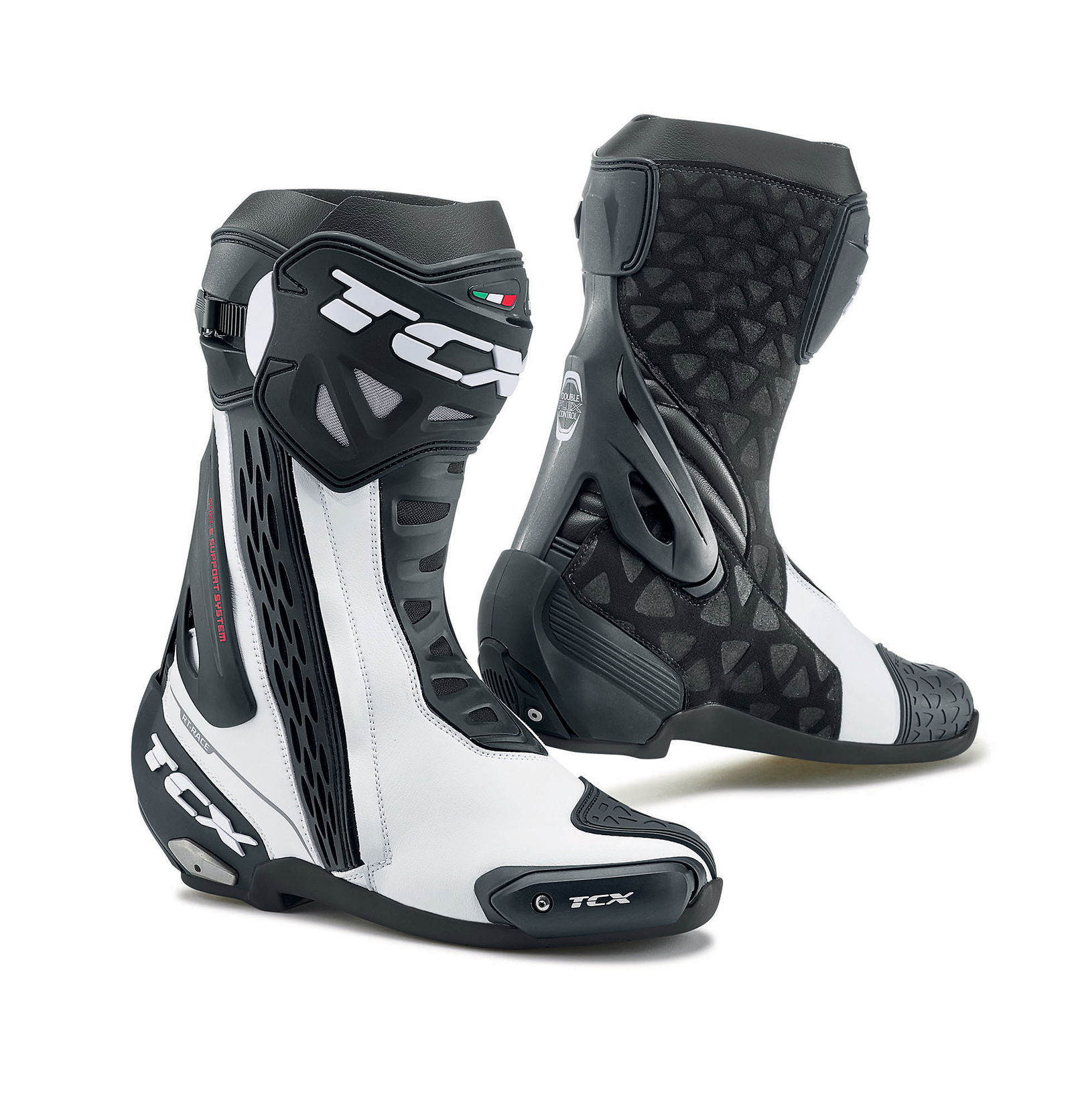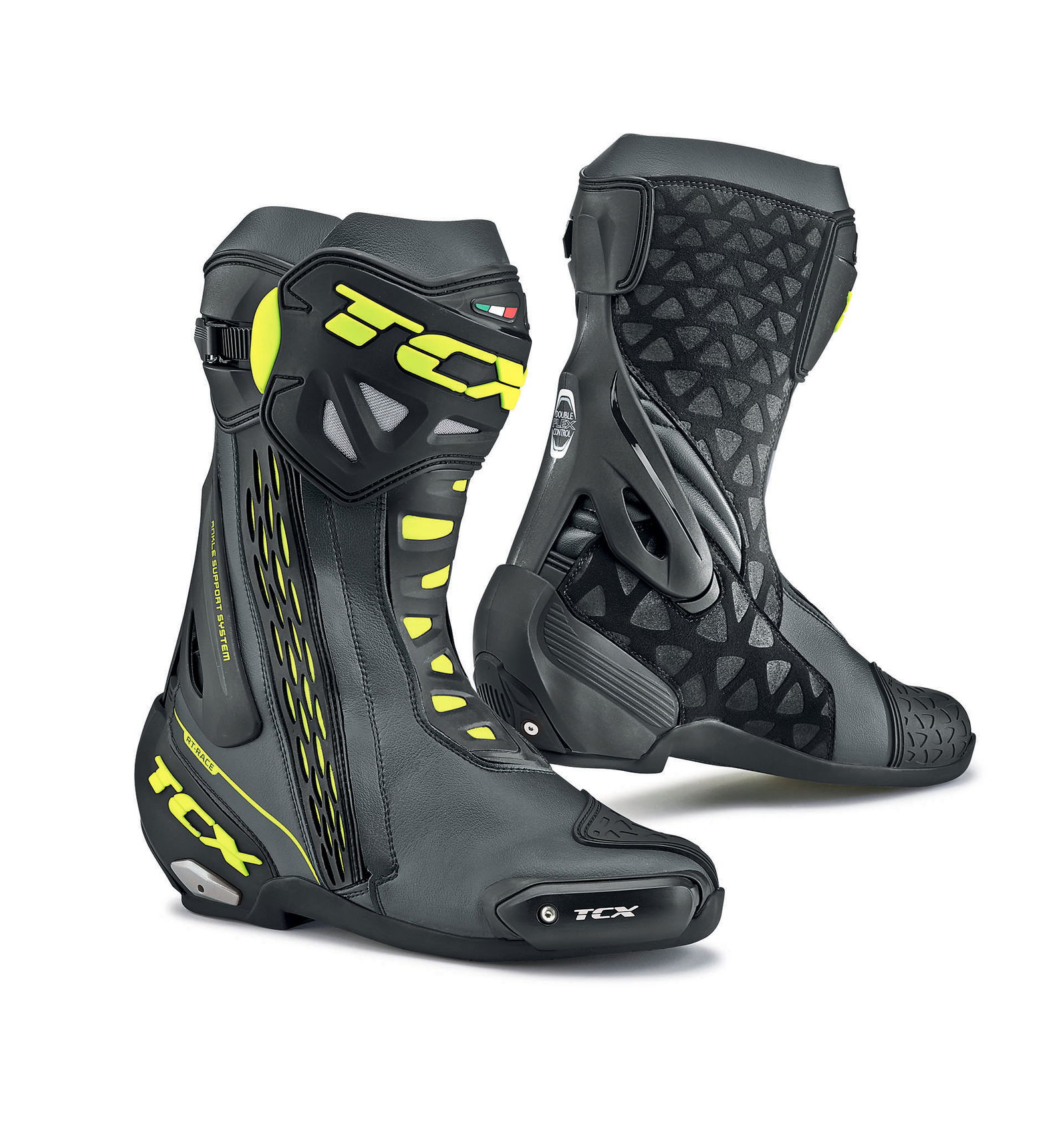 Una delle novità 2017 tra le calzature dedicate ai motociclisti più esigenti si chiama TCX RT-Race. Ideali per un utilizzo stradale, gli RT-Race si adattano efficacemente anche all’uso in pista, grazie a una serie di soluzioni e di accorgimenti pratici che migliorano sicurezza e comfort di chi indossa questi stivali.Caratterizzati da linee e forme spiccatamente racing, gli stivali TCX RT-Race hanno la tomaia in microfibra con dettagli specifici come la sovra-iniezione su materiale elastico nella parte anteriore e laterale dello stivale. I tecnici veneti hanno pensato a soluzioni in grado di offrire maggior precisione di calzata e adeguata sensibilità durante la guida. Il Fasten Fit Control, ad esempio, è un sistema di allacciatura interno, collegato alla fodera dello stivale con un laccio che permette il massimo avvolgimento della tomaia al piede. Oltre a un’estesa disponibilità di taglie e colori si aggiunge una versione waterproof.Scheda tecnicaTomaia: in microfibra con pannello anteriore e laterale sovra-iniettato e abbinato a materiale elastico; area flex posteriore imbottita; protezione interna in pelle scamosciataFodera: in Air Tech traspirante, con imbottitura a spessori differenziati nell’area cavigliaRinforzi: D.F.C. Double Flex Control System; protezione tibia con micro-iniezioni e prese d’aria in rete metallica; para leva integrato nella suola, nuovo tallone ergonomico in poliuretanoSliders: anteriore in poliuretano, tallone dotato di slider laterale in magnesio e posteriore in poliuretanoChiusura: laterale esterna, banda in materiale elastico sovra-iniettato abbinata a zipPlantare: anatomico e removibile, ultra leggero e traspiranteSuola: gomma mono-mescolaTaglie: dalla 38 alla 49Colori: bianco/rosso – nero/giallo fluo – bianco/rosso/giallo fluo – neroPrezzo: 299,99 euroPer info: tcxboots.com
