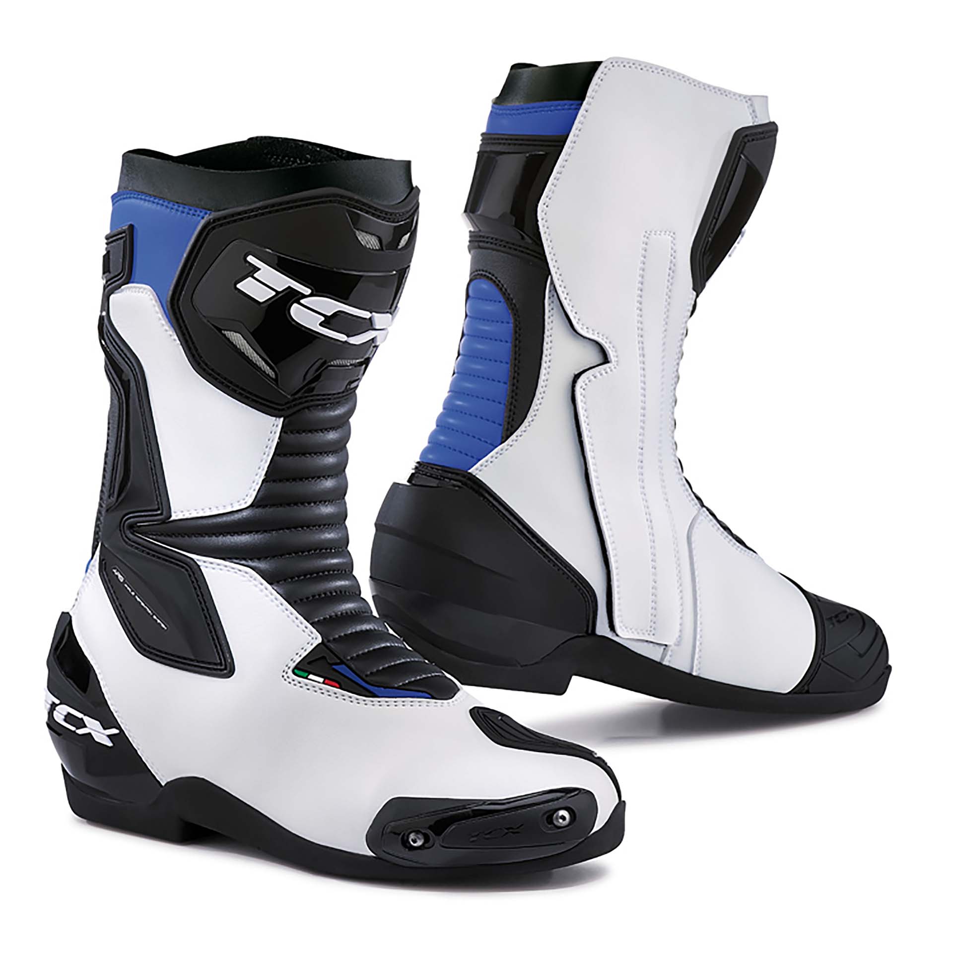 Nel fornito catalogo TCX figurano anche i TCX SP-Master, interessanti stivali sportivi entry level. Che hanno tutto quello che serve per divertirsi in sicurezza, anche in pista. Oltre alle classiche protezioni di tibia, tallone, ecc., sono dotati di Ankle Retention System (sistema di protezione caviglia) in poliuretano nella parte laterale. Hanno la tomaia in microfibra, suola con grip differenziato a seconda della zona di contatto e slider intercambiabili sulle punte. Sono disponibili in due colorazioni, neri o nell’abbinata bianco/blu/nero, e nelle varianti Air (la tomaia ha dei piccoli fori per aumentare la ventilazione), Waterproof (dotati di membrana impermeabile) e Gore-Tex (più confortevoli).