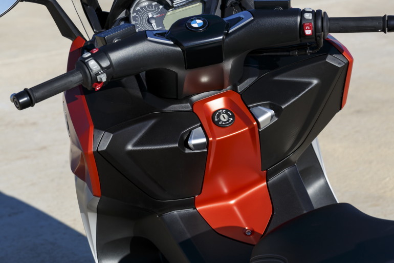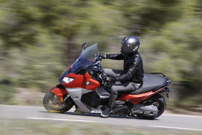 Nulla è cambiato per quanto riguarda lo spazio di carico, abbondante e sempre apprezzato: sul C 650 GT il vano sottosella ha un volume di circa 60 litri, è illuminato e può contenere due caschi. Chissà se in futuro ci troveremo anche una presa USB per caricare e connettere i nostri dispositivi elettronici… Anche sul C 650 Sport, sebbene il codino sia più snello e filante, in BMW sono riusciti a studiare e brevettare uno stratagemma che permette di alloggiare due caschi integrali. Si chiama Flexcase ed è un soffietto inserito nella base del vano sottosella, la cui apertura permette di ampliare lo spazio di carico verso il basso. Realizzato con un materiale resistente e flessibile sulla base del Kevlar, crea una tasca flessibile, impermeabile e resistente allo sporco da utilizzare a scooter parcheggiato. Durante la guida il coperchio del Flexcase resta chiuso e un interruttore di sicurezza rende impossibile l’avviamento del motore a coperchio aperto.Entrambi i modelli hanno conservato i due vani portaoggetti ricavati nello scudo, di cui quello di sinistra, particolarmente profondo, con una serratura che si blocca quando si chiude lo scooter. Ad essere sinceri, i due coperchi e le relative cerniere sono forse l’ultimo particolare poco raffinato rimasto sul C 650.Come di consueto gli scooter che abbiamo provato erano full optional e comprendevano tutte le opzioni dei pacchetti a listino: Highline per C 650 Sport con manopole e sella riscaldate, controllo pressione pneumatici (RDC), luce diurna e indicatori di direzione LED. Highline per C 650 GT con manopole e sella riscaldate, controllo pressione pneumatici (RDC). Pacchetto di sicurezza per C 650 GT con luce diurna e Side View Assist (SVA).C 650 Sport e C 650 GT saranno in vendita a partire dal 5 dicembre 2015, a un prezzo rispettivamente di 11.450 e 11.750 euro chiavi in mano, con costi di preconsegna, immatricolazione e primo tagliando inclusi. Entrambi i modelli saranno disponibili anche in versione da 35 kW (48 CV). Per coloro che vorrebbero uno scooter BMW, ma non questo, da Monaco confermano che nel prossimo il futuro si assisterà a un ampliamento della gamma verso il basso…Teatro della prova, Valencia. Mattinata dedicata al C 650 Sport e pomeriggio al C 650 GT, un centinaio di chilometri per ciascuno di cui una decina sulle strade cittadine e i restanti sulle colline del Parco Naturale della Sierra Calderona, poco più a nord.In sella, guardandosi intorno si nota l’affinamento della qualità generale con l’unico neo, a parer mio, degli sportelli e relative cerniere dei vani portaoggetti e del serbatoio. Ma è poca cosa.La posizione di guida differisce nettamente fra i due modelli. Sullo Sport si è più seduti e caricati sull’avantreno, grazie al manubrio più basso e alla forma della sella, che è solo 5 mm più vicina a terra (800 contro 805 mm) ma con una sagomatura diversa. Se, in questo caso, la sensazione di guida è quella di sentirsi “al comando”, una volta saliti, o meglio accomodati, sul GT si percepisce un comfort migliore: l’abitabilità è maggiore, la posizione più rilassata e non è difficile trovarsi con i piedi appoggiati sullo scudo. Questo paga quando si viaggia in “modalità crociera” ma fa sì che, se si decide di aumentare il ritmo e guidare nel vero senso del verbo, bisogna tirarsi su e cambiare assetto.Girata la chiave (perché non una smart-key come sulle moto BMW da dimenticare in tasca del giubbotto per tutto l’inverno?) e premuto lo starter, si apprezza il sound del nuovo terminale di scarico senza presilenziatore, che è il preludio al carattere più deciso del bicilindrico. Il lavoro fatto su taratura e spaziatura dei rapporti del cambio CVT e sulla frizione, che adotta molle più morbide, si percepisce da subito. Il nuovo C 650 è più pronto e ha uno spunto migliore, soprattutto lo Sport, anche se quando ci si muove fra le auto con un filo gas si sente un po’ di on-off.Inoltre, da ora in poi, se si scatta al semaforo con il gas spalancato si potrà vivere l’esperienza dell’ASC, il controllo di trazione “semplificato” (o di stabilità, come chiamano a Monaco il TC senza piattaforma inerziale), che taglia per una frazione di secondo l’erogazione e che è di serie come l’ABS. Maneggevoli anche in città, con il GT che ovviamente paga un po’ la posizione in sella meno attiva e reattiva, ci piacerebbe vederli alla prova del fuoco di Milano: Siviglia è troppo ordinata e la nostra guida troppo educata per riuscire a simulare ciò che accadrebbe alle 8.30 di un lunedì mattina in zona Garibaldi…A proposito di guida in città, abbiamo avuto modo di provare il Side View Assist, dispositivo ben noto agli automobilisti, che avverte il guidatore della presenza di veicoli nel cosiddeto angolo morto. La localizzazione avviene attraverso sensori a ultrasuoni posizionati sul frontale e sul portatarga del GT, che entro un range di velocità fra 25 e 80 km/h percepiscono altri veicoli che si trovano a una distanza fino a cinque metri e che avanzano a una differenza di velocità massima di 10 km/h. Quando questa situazione si manifesta il pilota è avvertito dal lampeggiare di due triangoli alla base degli specchietti retrovisori. Devo dire che superata una prima fase di curiosità, in cui anzichè concentrarsi sulla strada si tengono gli occhi sui triangoli per vedere se si accendono, si impara a fare finta che non esistano, limitandosi a guardare negli specchietti quando si decide di cambiare corsia: in questo modo se ne apprezza l’aiuto, recependo l’eventuale segnale di allarme e valutando di nuovo la manovra che si sta per compiere. Di sicuro un passo avanti nei confronti della sicurezza di guida.Prima di imboccare la tangenziale alziamo il plexiglass: tre posizioni e regolazione manuale sullo Sport, regolazione elettrica sul GT, ma in entrambi i casi per chi come me supera il metro e ottanta c’è il fastidio di avere il bordo superiore proprio ad altezza degl