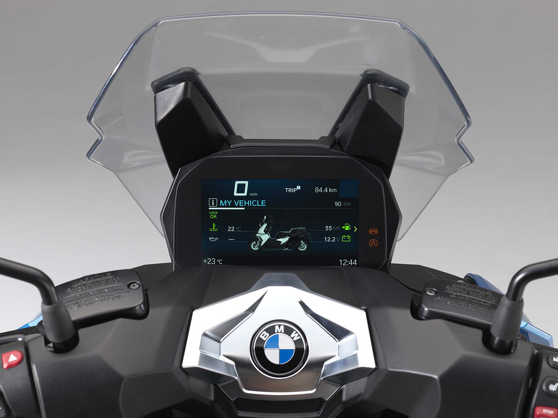 Abbiamo detto che in BMW volevano caratterizzare il nuovo C 400 X dal punto di vista delle dotazioni. Ebbene, hanno deciso di farlo guardando alla connettività e dando l’opportunità di accessoriarlo con quello stesso BMW Connectivity che si trova sull’ammiraglia R 1200 GS. Sistema che permette la connessione tra moto, smartphone e casco via Bluetooth, con una gestione semplice e intuitiva attraverso la manopola multi-controller. La strumentazione standard è sostituita da un display TFT da 6,5″ che consente di accedere a navigazione, chiamate sul cellulare, media e informazioni sul veicolo. La grafica è volutamente essenziale e alcune funzionalità tipiche di questi sistemi disabilitate per evitare che ci si possa distrarre dalla guida tenendo gli occhi posati troppo a lungo sul display. Tutte le funzioni oltre ad altre possono essere gestite anche attraverso la App gratuita BMW Connected App.Accanto al kit Connectivity, che sarà proposto a circa 650 euro, sarà possibile dotare il C 400 X con il Keyless Ride e il kit Comfort, dedicato a chi usa lo scooter tutto l’anno, che comprenderà manopole e sella riscaldate.Con il contributo di Stefano Martignoni RIDE La prima presa di contatto con il BMW C400X ha esito direi molto positivo. Superiore alle mie aspettative. La sensazione è che BMW abbia imparato per bene la lezione dopo il debutto difficoltoso nel mondo scooter con i suoi bicilindrici (migliorati poi nel corso degli anni). Il C400X appare come un progetto decisamente maturo, pronto a competere ad armi pari con i top seller di un segmento dai numeri importanti (oltre 30.000 pezzi nel mondo) e in cui spiccare con un mix di prestazioni/prezzo.Finiture ok quasi tutto