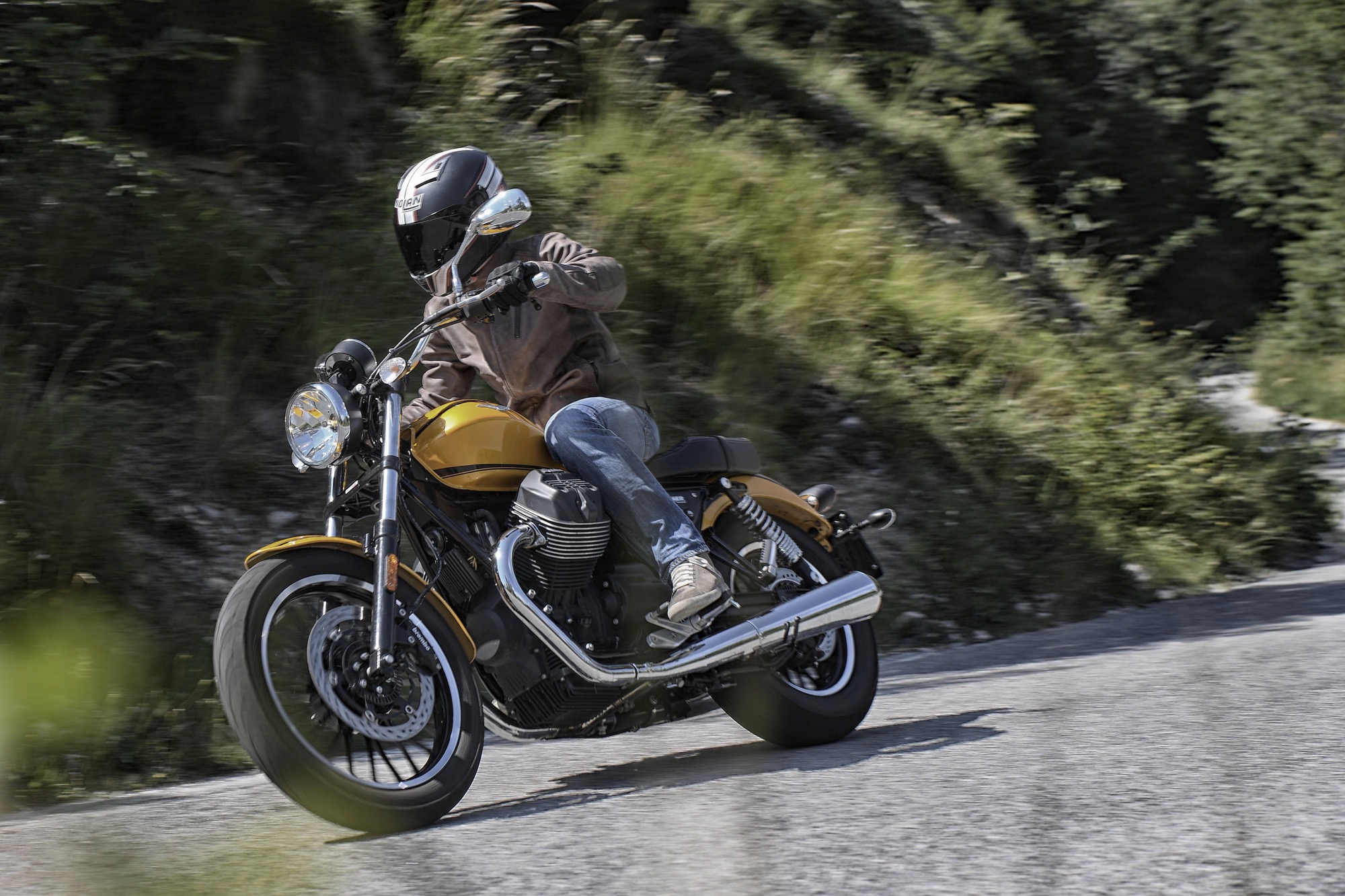 C’è spazio anche per il passeggero, che però può essere sacrificato in nome dell’estetica rimuovendo le pedane dedicate e trasformando la V9 Bobber in monoposto.Gli accessori meriterebbero una specifica prova, vista la quantità e la varietà delle proposte. Per la V9 Roamer, ad esempio, è possibile valorizzare le potenzialità turistiche con il set di borse laterali in pelle e la borsa da fissare al portapacchi cromato. Tanti gli accessori in alluminio ricavati dal pieno, tra cui il tappo del serbatoio completo di serratura, le manopole, le leve freno e frizione, gli specchi retrovisori.Sulla V9 Bobber uno degli accessori più interessanti è la sella monoposto, che contribuisce a valorizzare il design. Non manca l’impianto di scarico più sportivo ma comunque omologato e tantissimi particolari in alluminio, ricavati dal pieno.