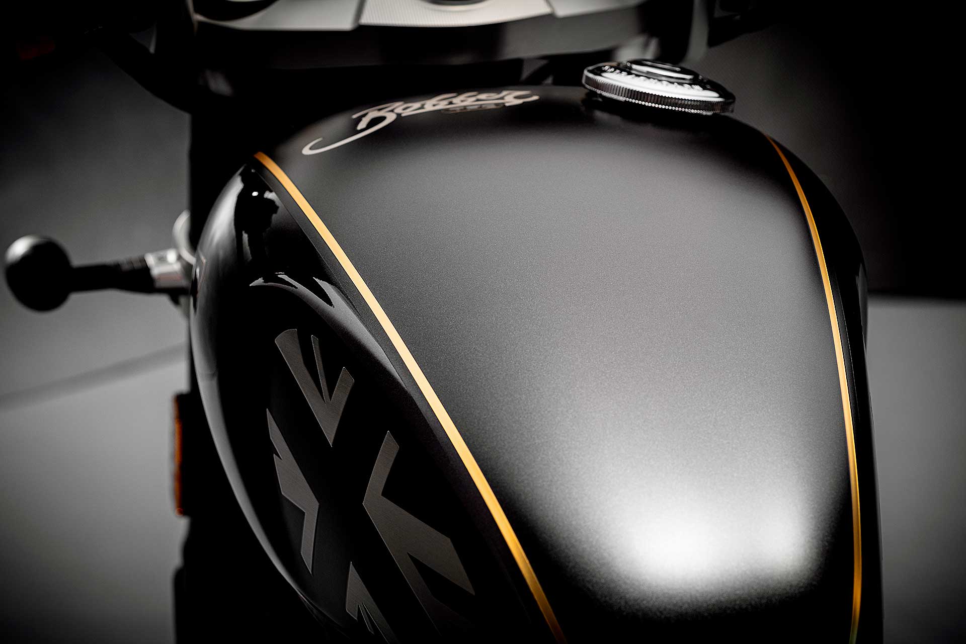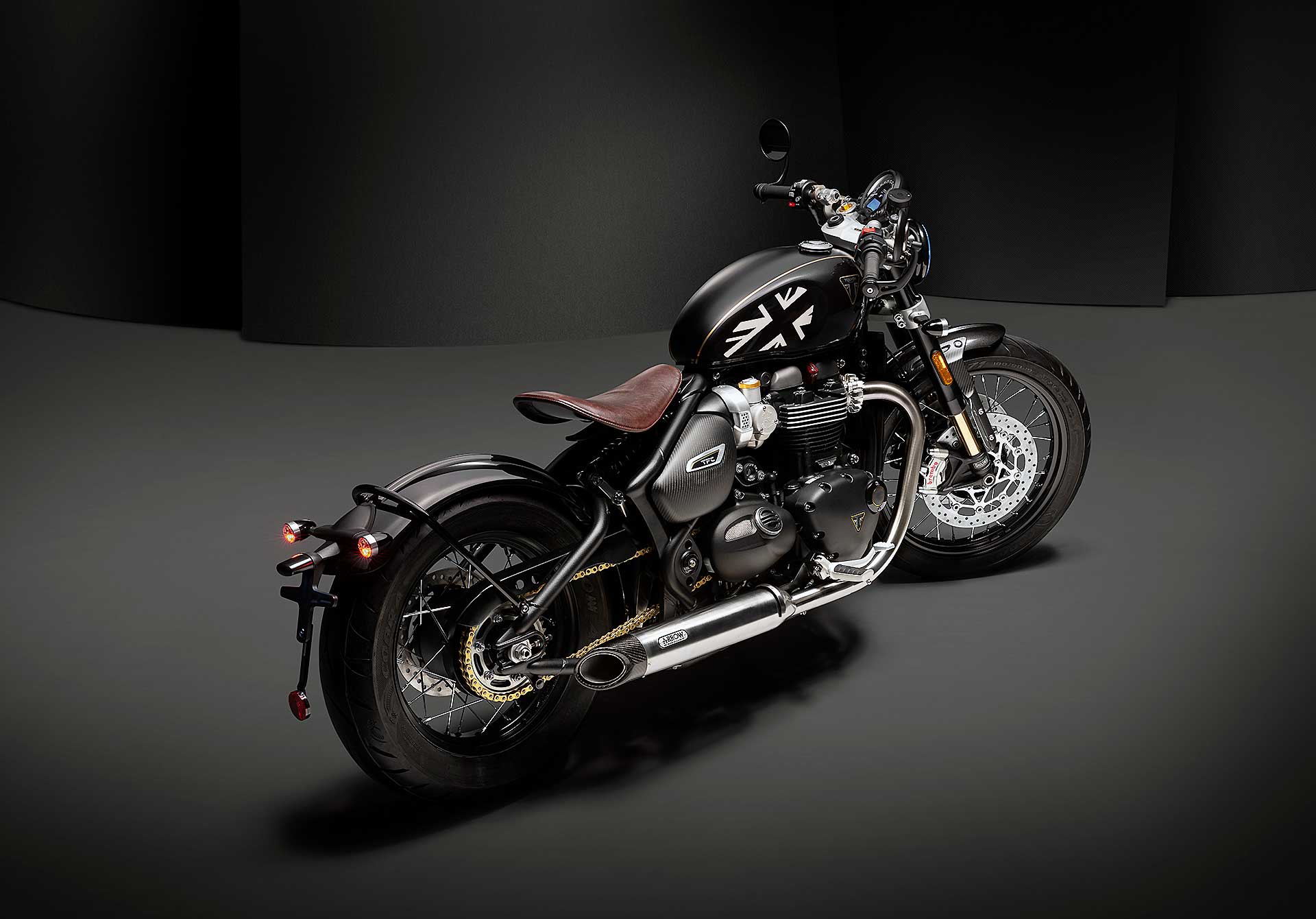 La linea inconfondibilmente “bobber” non si tocca, però si può impreziosire. Ecco dunque fibra di carbonio a volontà per le sovrastrutture, tanti particolari ricavati dal pieno, come le teste della forcella e pelle pregiata per la sella (che mantiene la possibilità di regolazione dell’avanzamento). Nuovi anche i semimanubri e la conseguente posizione di guida, più sportiva. Per finire, un spennellata di nero, che non guasta mai, su cerchi, telaio e forcellone, carter motore e sospensioni, con l’unica concessione di un lampo dorato che viene dalla catena e da un filetto sul serbatoio.