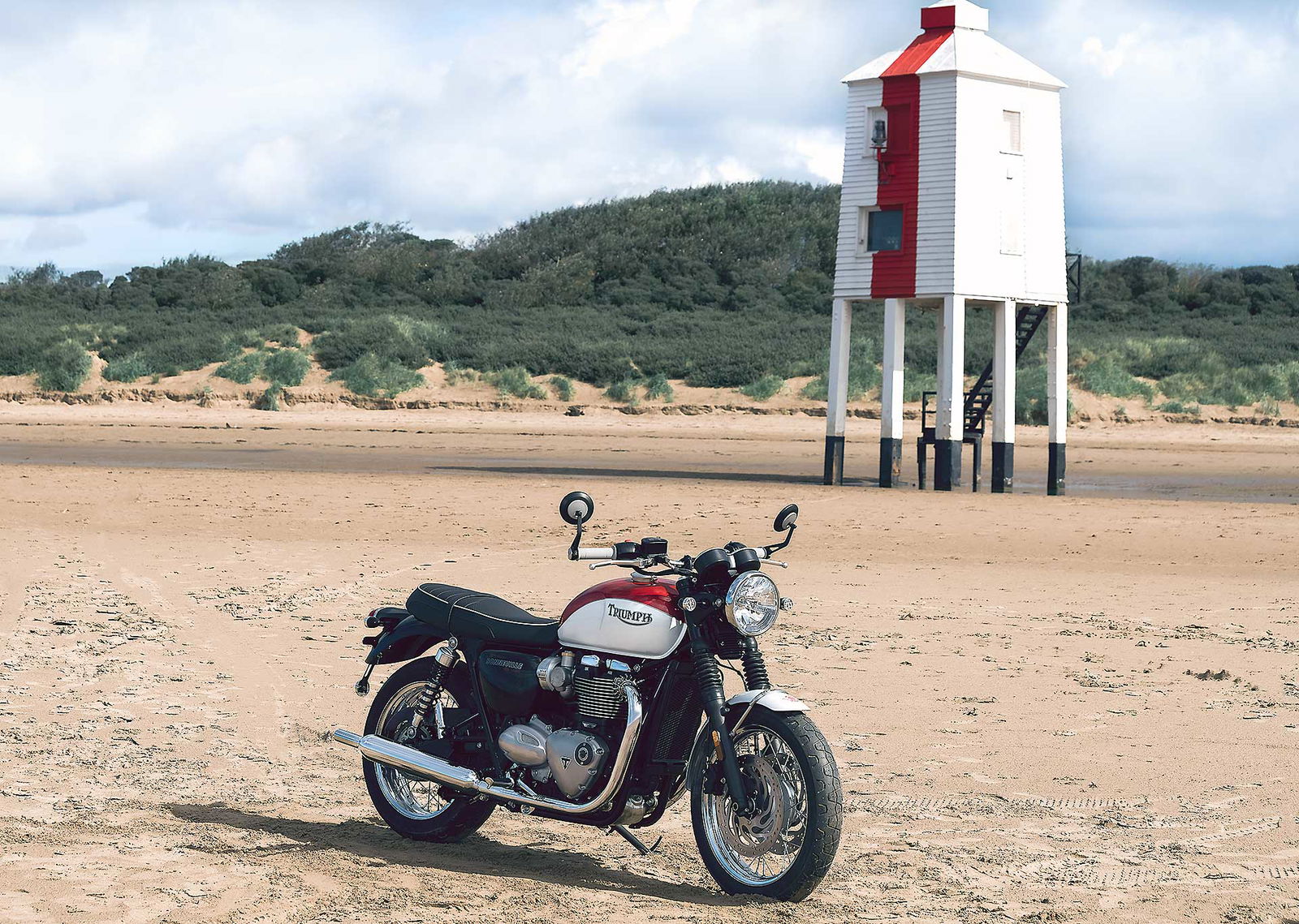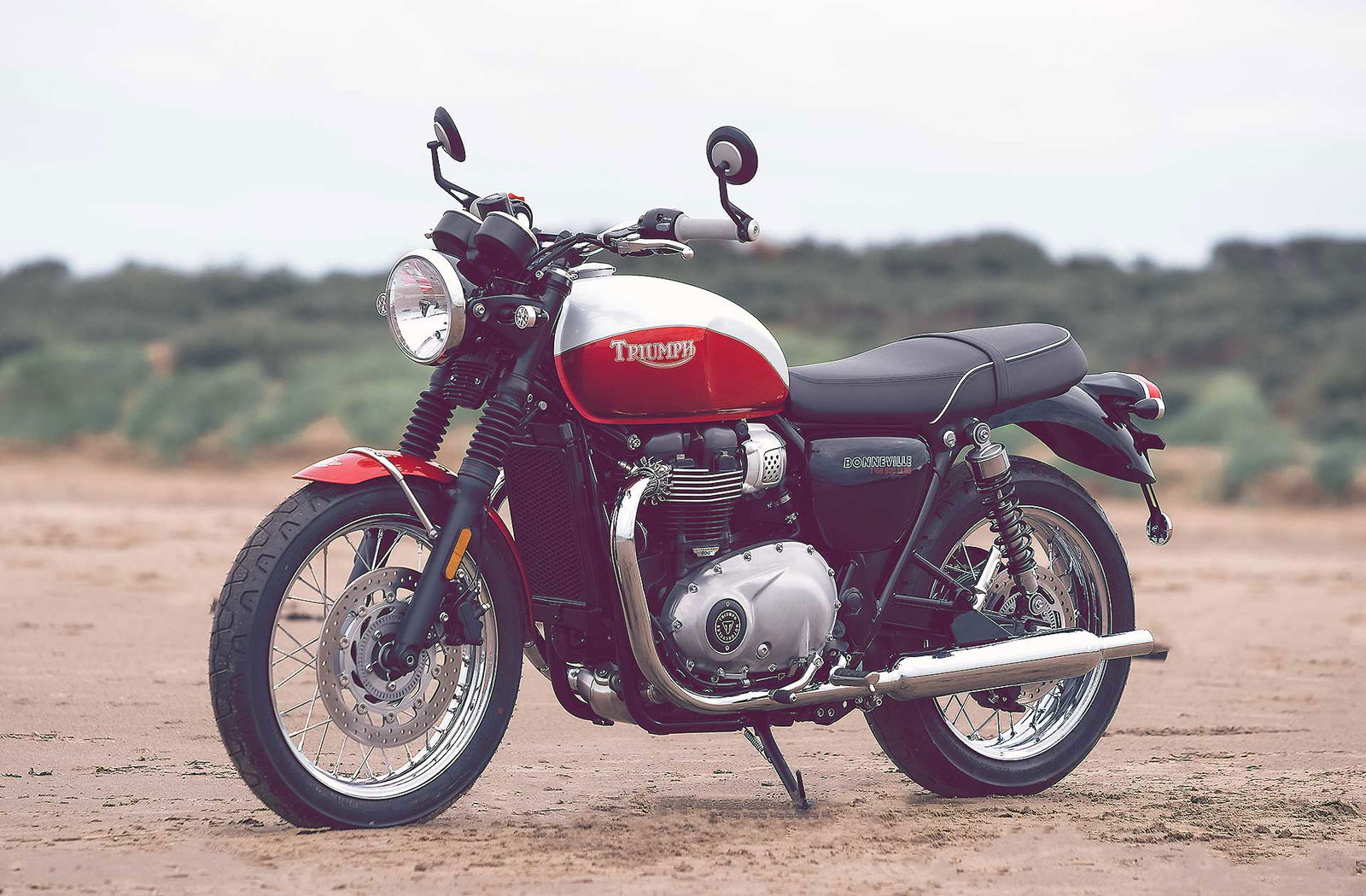 Per rendere omaggio a questo personaggio, Triumph ha deciso di dedicargli la più classica delle sue Modern Classic: la Bonneville, in entrambe le versioni T100 e T120 (motore da 900 cc con 55 cv la prima e 1.200 cc con 80 cv la seconda). A differenziare questa edizione speciale sono la verniciatura bicolore con filetti dipinti a mano, il vecchio logo Triumph (che compare per la prima volta sul serbatoio di un modello attuale), i fianchetti dedicati e lo storico “flying globe“, il logo che Bud Ekins utilizzò per la sua concessionaria di Sherman Oaks, che campeggia su serbatoio e parafango.