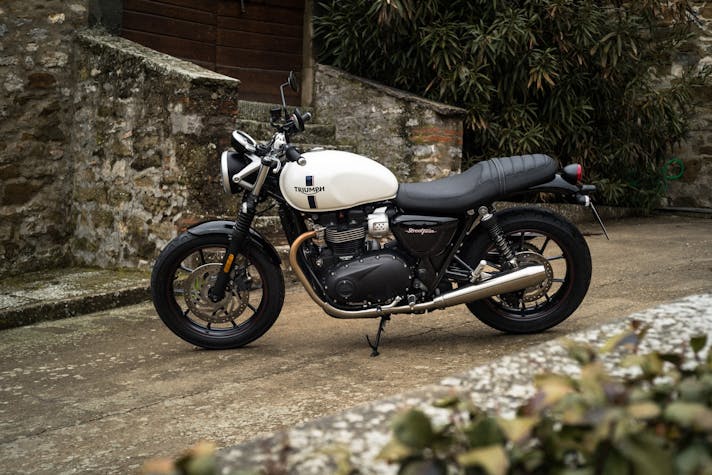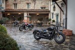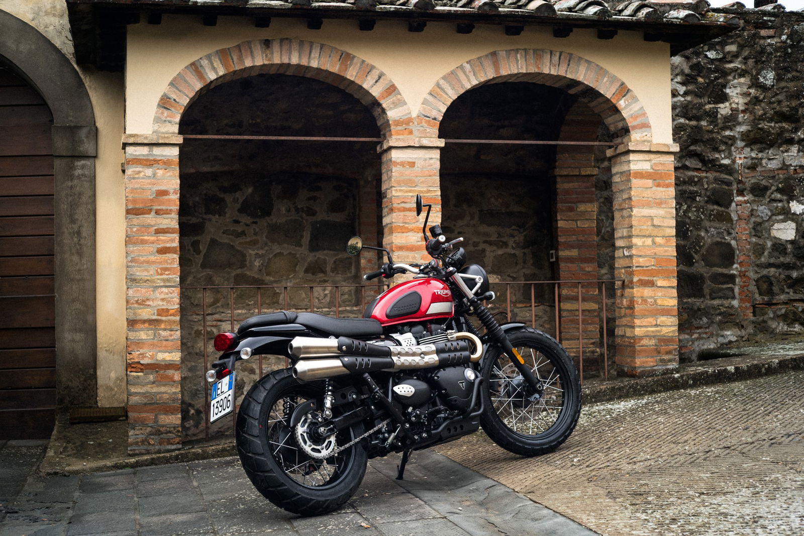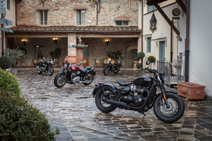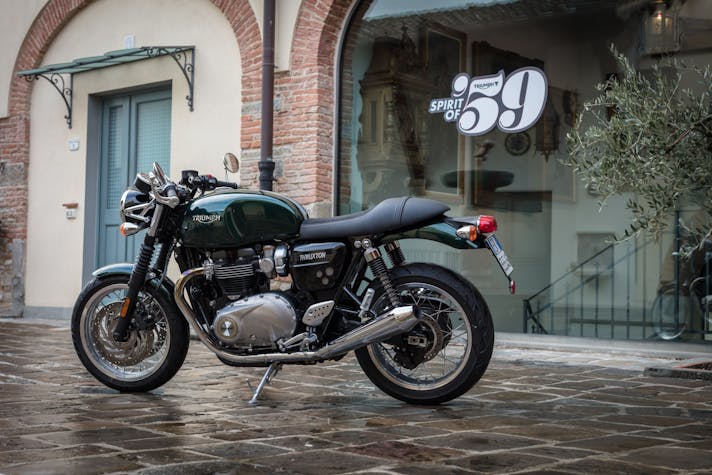 Toscana. Chiantishire (per dirla all’inglese, appunto…). Tre motociclette a scelta tra le Triumph della famiglia Modern Classics e una giornata intera a disposizione per guidarle fra le colline e i cipressi. Con questo programma Triumph ha voluto festeggiare un compleanno importante, forse il più importante della sua storia ultracentenaria.Esattamente 59 anni fa, nel 1959, nasceva infatti la prima Bonneville, il modello che ha segnato la prima vita del marchio Inglese e che lo ha aiutato a ricominciare la seconda.UNA GAMMA COMPLETASe una volta era solo “la” Bonnie, oggi la famiglia si è allargata e, tra fratelli e cugini di primo e secondo grado, siamo arrivati a 9 modelli declinati in ben 12 versioni.Si parte con la entry level Street Twin (8.900 euro) a si arriva alla Speedmaster (l’ultimo fiocco rosa è il suo), attraverso due motorizzazioni da 900 cc (Street Twin, Street Cup, Street Scrambler e T100) e 1200 cc (T120, Thruxton, Bobber, Bobber Black e Speedmaster). Speedmaster e T120 a parte, le altre Modern Classics le avevamo già guidate tutte, quindi quando ci è stato chiesto di indicare le tre Triumph con cui divertirci su e giù per le colline del Chianti, ho acceso contemporaneamente testa e cuore…La testa ha consigliato la Speedmaster, perché ancora ci mancava e perché, con la Bobber Black, è l’altra vera novità proposta da Hinckley per questa stagione. Il cuore mi ha fatto puntare invece il dito sulla Thruxton R, per i miei gusti la più bella fra le Triumph tutte, mentre ancora la testa mi ha consigliato di scegliere quella che le fa da naturale contraltare, ossia la “piccola” Street Twin.TRE STILI BEN DISTINTINata come declinazione cruiser della Bobber Black, la Speedmaster ne condivide motore e ciclistica ma si differenzia, e di molto, per lo stile di guida. Responsabile è la posizione in sella, figlia del beach bar e delle pedane avanzate che ne fanno una instancabile macina chilometri. Certo, il motore è lo stesso entusiasmante 1200 HT della Bobber, con coppia e carattere da vendere, ma le pedane che grattano in un amen e il “poltrona feeling” frenano sul nascere ogni bollore. Non resta dunque che buttare dentro tutte le marce e sfruttare il gran tiro dell’elastico bicilindrico, godendosi i panorami e il compagno di viaggio.Dietro la porta di ingresso nel mondo Bonnie c’è lei, la Street Twin. Esteticamente la trovo molto bella: pulita, essenziale, mi piace il contrasto ruote a razze/look classico e il bianco del serbatoio, poi, è la morte sua… Non l’avevo mai guidata quindi ero assai curioso. La inforchi e sembra di essere su una bici, un giocattolino. Sella bassa (anche troppo, per la mia stazza), peso contenuto e, soprattutto, ben distribuito, maneggevole e ben triangolata. Ma bastano poche centinaia di metri per cambiare idea. Altroché giocattolino… La Street Twin è una motocicletta “vera” e il piccolo 900 è corposo e ha cavalli e coppia a sufficienza per divertirsi e sentirsi appagati. Ciclistica eccellente, sospensioni comode ma pronte ad assecondare anche ritmi decisamente sopra le righe.E alla fine la bicicletta ti fa capire cosa sia il piacere di guidare una motocicletta…Se la Street Twin è dietro la porta d’ingresso, la Thruxton R è in fondo al corridoio del mondo Bonnie… È l’interpretazione più sportiva delle modern Classic, quella che ripropone il concetto di superbike che la Bonnie del ’59 incarnava con successo quando correva sulle piste di allora. Basta raccontare che le quote della ciclistica della Thruxton R sono più aggressive di quelle della Speed per far capire di cosa sto parlando. Si tratta di una motocicletta capace di prestazioni dinamiche che impressionano, sia per le qualità del motore (con una coppia che arriva tutta subito e un allungo infinito), sia per il bilanciamento e l’efficacia della ciclistica, sia per la componentistica di alto livello (leggi ammortizzatori Öhlins, forcella Showa big piston, freni Brembo con pinze monoblocco radiali, gomme Pirelli Diablo Rosso Corsa). Anche l’elettronica è all’altezza con ride by wire e tre mappature, controllo di trazione e ABS disinseribili. Un pacchetto che permette di divertirsi e togliersi grosse soddisfazioni su ogni terreno: stabilità e rigore si fanno sentire sul veloce, mentre agilità e tiro danno gusto agli asfalti più tortuosi. IL CONCORSO In apertura abbiamo parlato di un fortunato a cui un regalo, a differenza nostra, resterà per sempre. Legato al progetto Spirit of ’59 è stato infatti lanciato un concorso a premi per il quale, tutti coloro che prenoteranno un test ride sul sito Triumph e lo effettueranno entro il 31 maggio 2018, potranno partecipare all’estrazione della Bonneville T100 Special Edition Spirit of ’59 realizzata da Kaos design. E, per i fortunati un po’ meno fortunati, grazie al meccanismo Instant Win, c’è comunque la possibilità di uscire dalla concessionaria indossando una delle esclusive giacche in pelle Triumph.