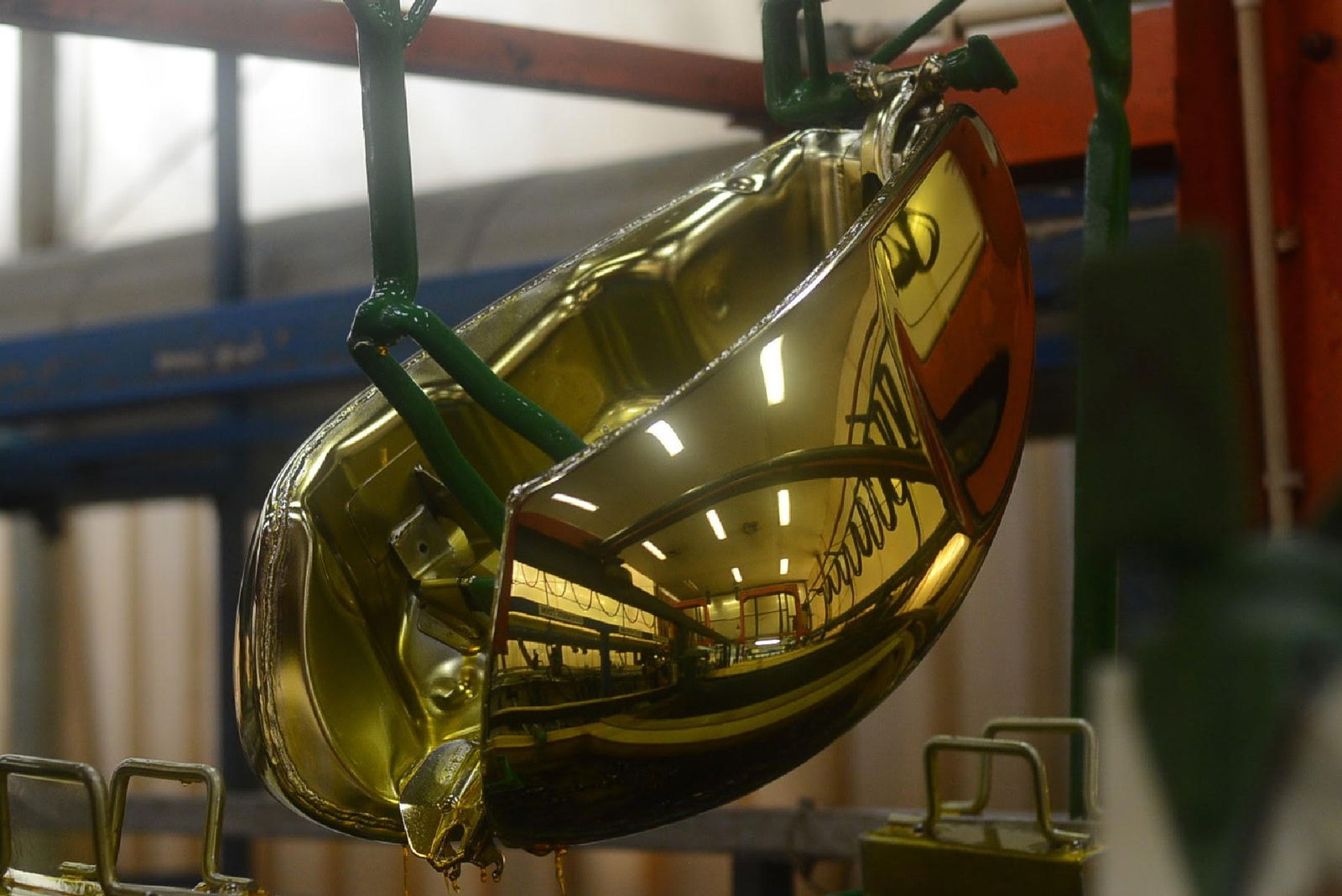 Il procedimento è composto da una serie di bagni in soluzioni chimiche diverse. I primi hanno lo scopo di sgrassare e di pulire i pezzi. Comunemente, per tale funzione si sceglie una soluzione elettrolitica di acido cloridrico o di soda caustica, a cui si fa seguire una serie di lavaggi. Ma qui in casa Triumph si è scelta una tecnologia modernissima e più efficace, quella della pulizia a ultrasuoni.