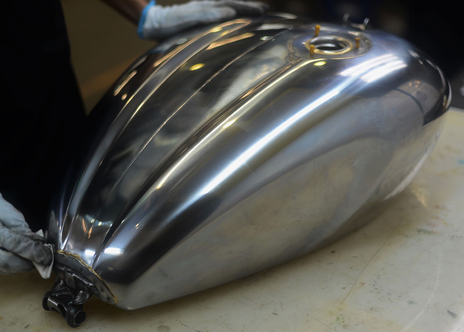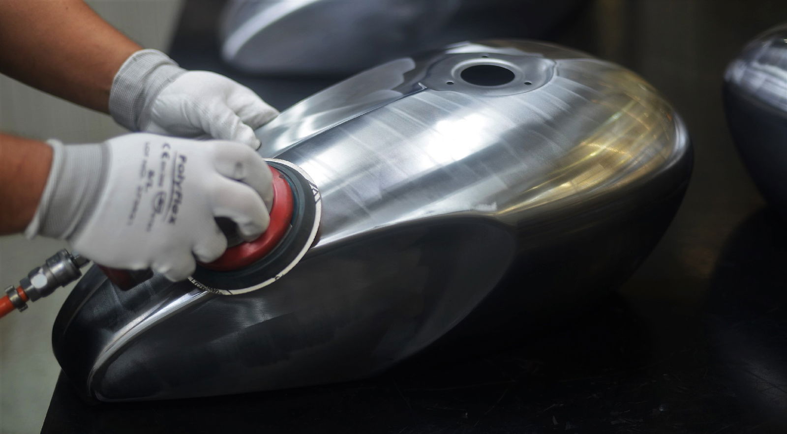 La cromatura di questa seria speciale richiede cinque ore addizionali di lavoro per ogni moto, compresa la delicatissima lucidatura a mano quale passaggio finale: il segreto dello splendore di questi serbatoi. Senza contare l’arte dell’applicazione degli elementi metallici (non riproduzioni plastiche) sul serbatoio: una tecnica antica che si realizza con parti sottili e un’incredibile abilità nel maneggiare finiture rigide da applicare sul serbatoio. Il tutto protetto da una vernice trasparente dalla finitura liscia, impeccabile e impercettibile.