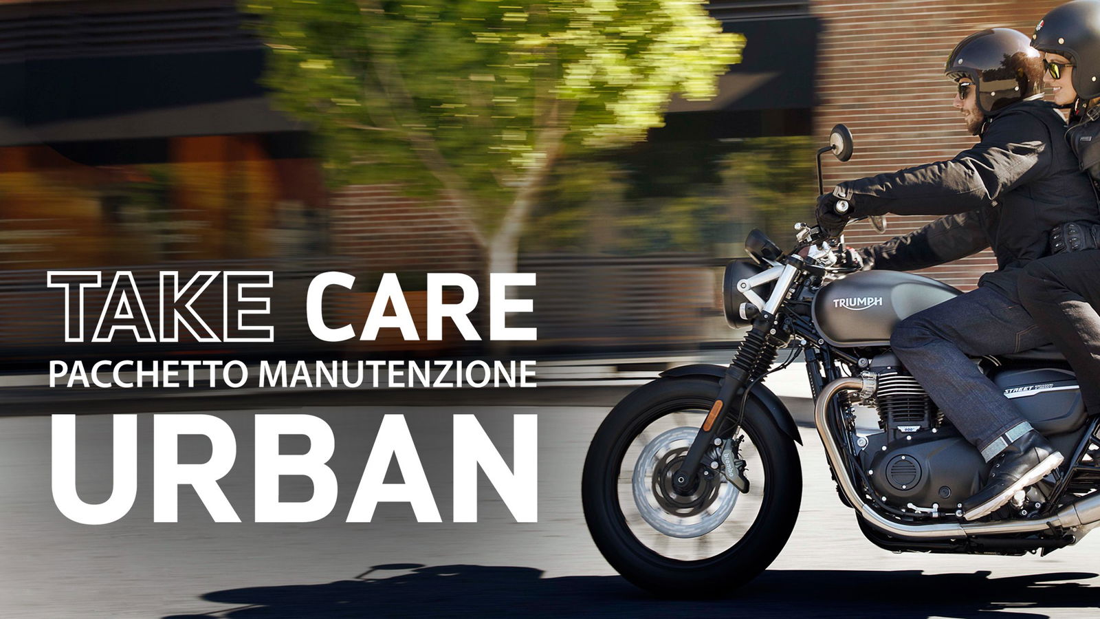 Triumph Take Care offre la possibilità di acquistare 3 diversi pacchetti di manutenzione articolati sulla base del profilo di utilizzo della propria moto e in relazione alla percorrenza chilometrica. Acquistando uno dei pacchetti, il cliente potrà contare sull’assistenza regolare e conforme a quanto raccomandato da Triumph Motorcycles, ma anche di un vantaggio economico per l’acquisto di ricambi soggetti a usura, non previsti dal piano di manutenzione (come pastiglie o dischi freno).Inoltre, ogni pacchetto può essere integrato nel programma di finanziamento sottoscritto nel momento dell’acquisto della moto nuova e, in caso di vendita, la copertura eventualmente residua può essere trasferita al nuovo proprietario, di fatto sostenendo il valore residuo della motocicletta.