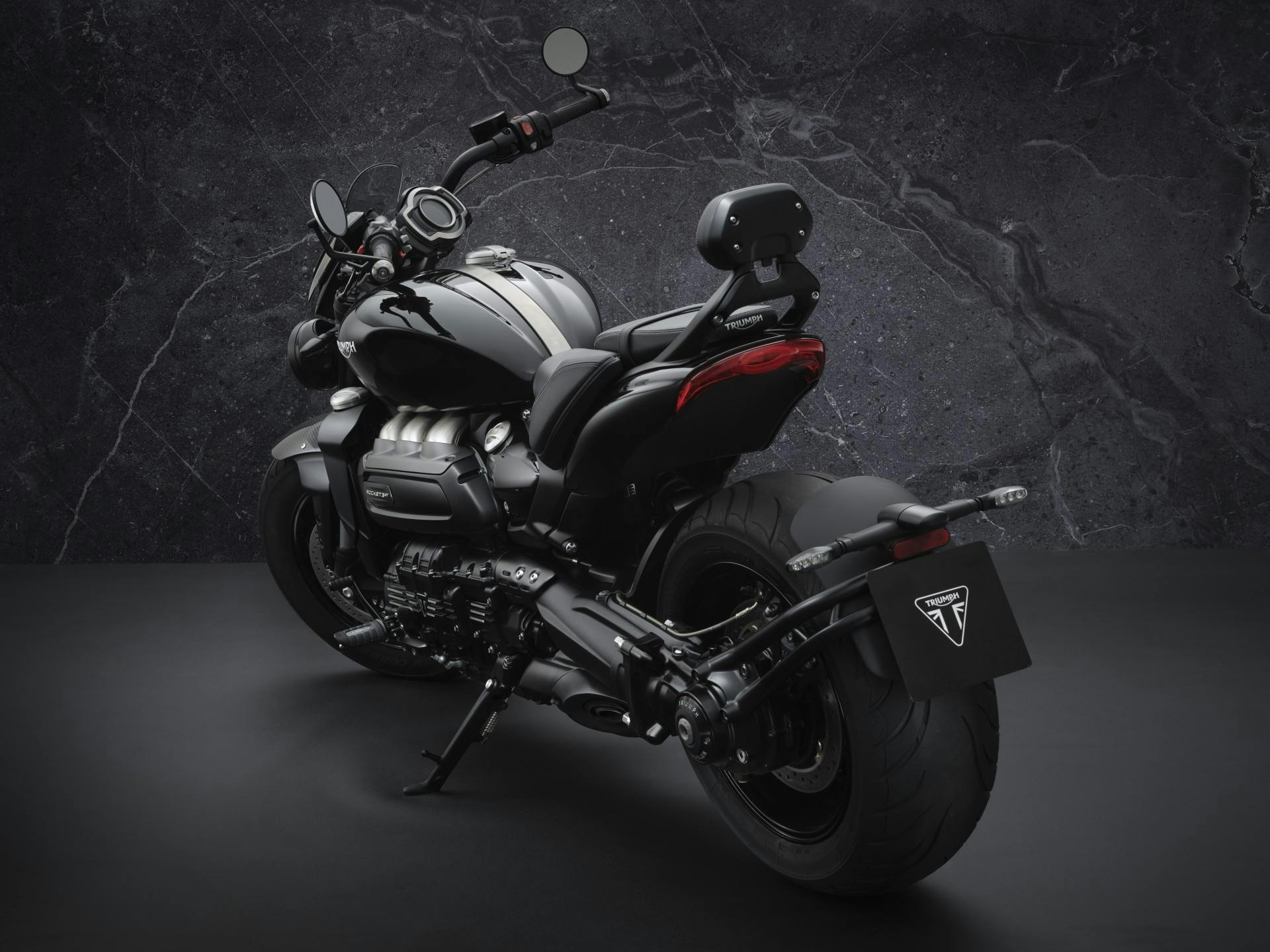 Ad accomunare entrambe le versioni della power cruiser c’è anche il parafango anteriore in fibra di carbonio, ma la Rocket 3 GT Triple Black si distingue per il serbatoio verniciato con uno schema esclusivo a tre sfumature di nero tono-su-tono