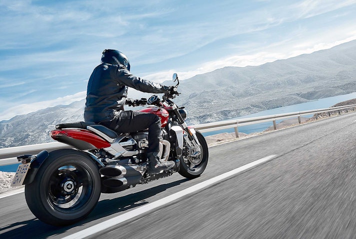 Si chiameranno R e GT le sorelle Rocket 3. Identiche nella scheda tecnica e nelle prestazioni, si differenziano per alcuni particolari che ne caratterizzano l’impostazione di guida, oltre che per le colorazioni (rossa o nera la prima, grigio/argento o nera la seconda) e le finiture dei cerchi.La R è una Roadster pura, la GT più Touring, con manubrio arretrato, flyscreen più protettivo, sella guidatore e sellino passeggero più comode e scavate (773 mm l’altezza da terra per la R, 750 mm per la GT) e dotata di schienalino minimal, regolabile in altezza. Entrambe possono essere facilmente convertite in configurazione “solo”, grazie a un accessorio opzionale.Per ottimizzare il comfort e l’ergonomia, tutte e due offrono una serie di micro regolazioni: i comandi a pedale della Rocket 3 R possono essere spostati verticalmente (0 mm / -15 mm), mentre quelli della Rocket 3 GT, che sono montati in posizione avanzata, hanno invece tre ulteriori possibili spostamenti orizzontali (-25 mm / 0 mm / +25 mm).Comuni a entrambe le versioni ci sono un catalogo di oltre 50 accessori dedicati, fra cui il Triumph Shift Assist, una sorta di quick shift up&down, il sistema di controllo integrato per GoPro, un sistema di navigazione con tecnologia Google, che interagisce con l’app MyTriumph, l’integrazione Bluetooth completa per lo smartphone e il Tyre Pressure Monitoring System.