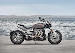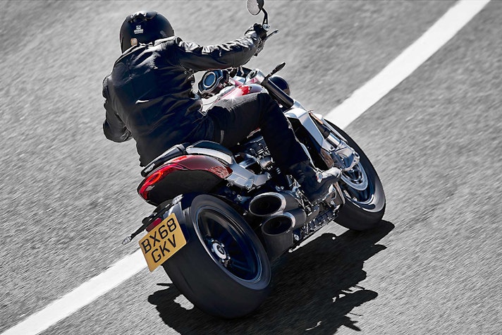 Con la presentazione, a maggio, della Rocket 3 TFC molta della suspense su come sarebbe stata la nuova Rocket 3 era svanita. Escludendo infatti alcune sovrastrutture e finiture da special, era evidente che motore e ciclistica sarebbero state le stesse: ecco dunque il tre cilindri longitudinale da 2.458 cc (nessun altro motore di grande serie è tanto grosso) capace di 167 cv a 6.000 giri e, soprattutto, 221 Nm di coppia a 4.000 giri. Ad abbracciarlo, un telaio in alluminio dal disegno inedito, cui si collega un forcellone monobraccio, anch’esso in lega leggera. Fra motore, telaio, cerchi, scarichi e sovrastrutture, la nuova Rocket 3 pesa ben 40 kg meno della precedente.