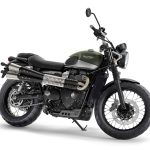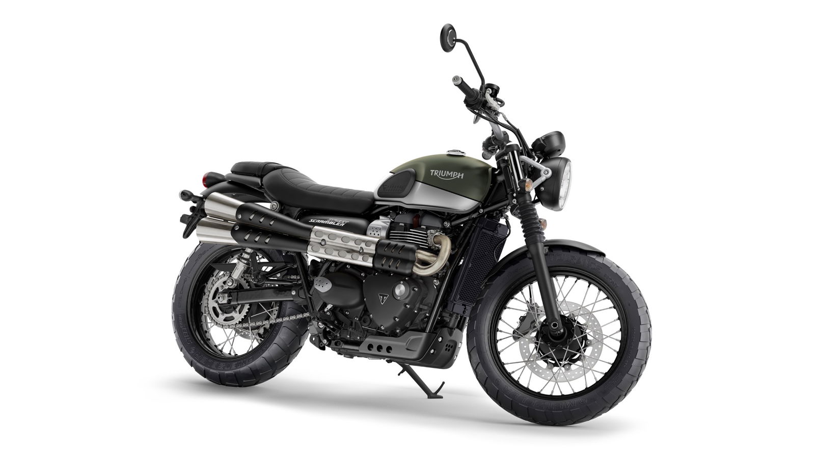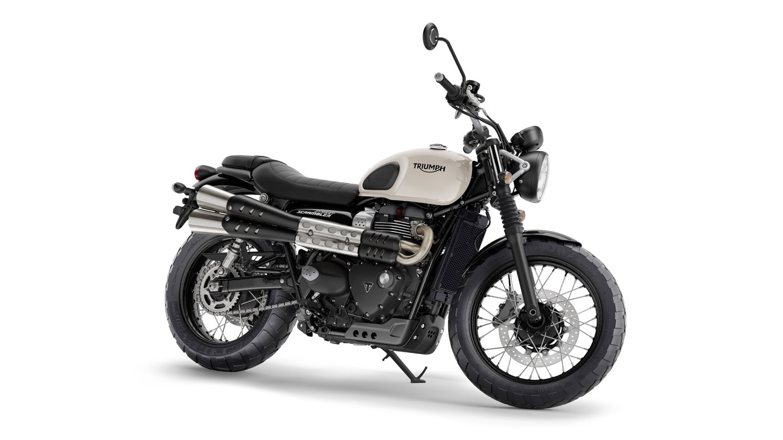La nuova Triumph Street Scrambler è proposta in tre varianti cromatiche, chiamate Fusion White, Cranberry Red e Khaki Green/Matt Aluminium, con linea jet black.