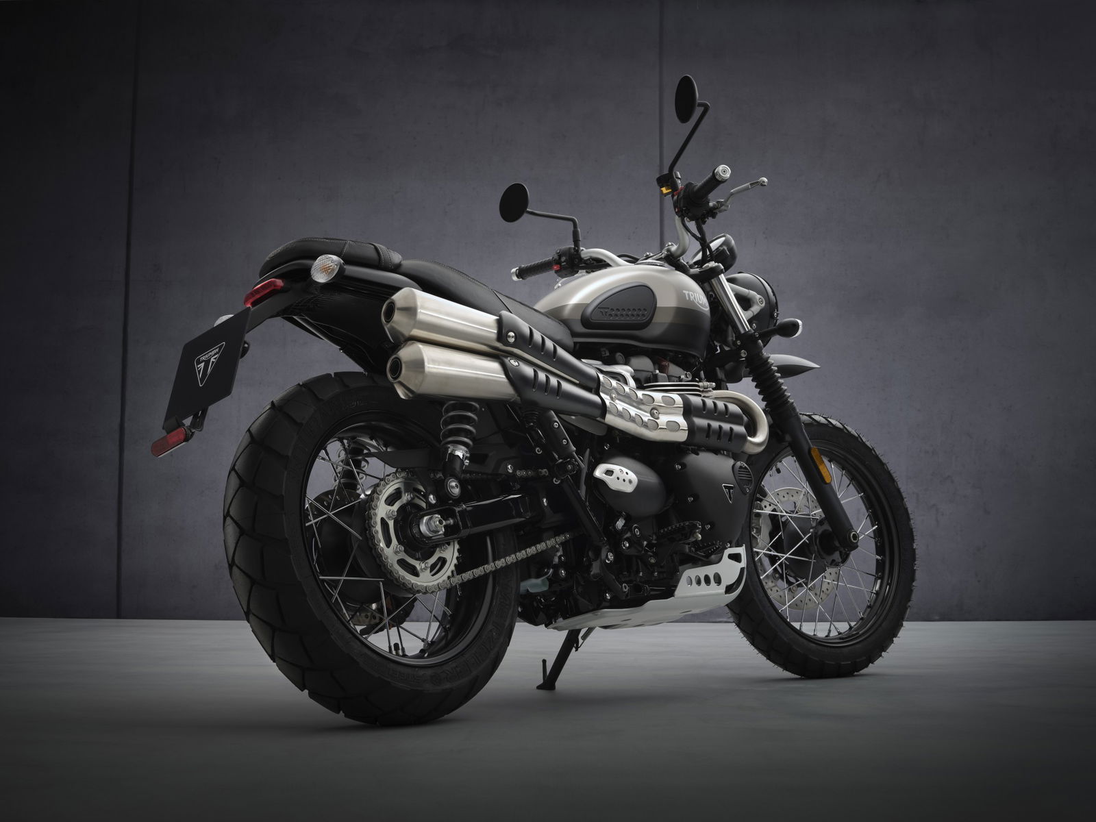 Partiamo dall’aspetto più significativo: il prezzo… La nuova Triumph Street Scrambler costa infatti quando la precedente, ossia 10.900 euro. Non cambiano poi ciclistica ed elettronica. L’impostazione è la classica da scrambler, con ruota anteriore da 19″, forcella con escursione abbondante, manubrio largo e gomme dual purpose per affrontare senza troppi problemi anche le divagazioni off-road. L’impianto frenante è l’affidabile Brembo, l’altezza sella sella è contenuta in 790 mm, ABS e traction control ci sono e sono disinseribili, e si può scegliere fra tre riding mode (Road, Rain e Off-road). Non mancano presa USB, immobilizer e la possibilità di scegliere fra 120 accessori originali per personalizzarne lo stile, il comfort o la sicurezza.