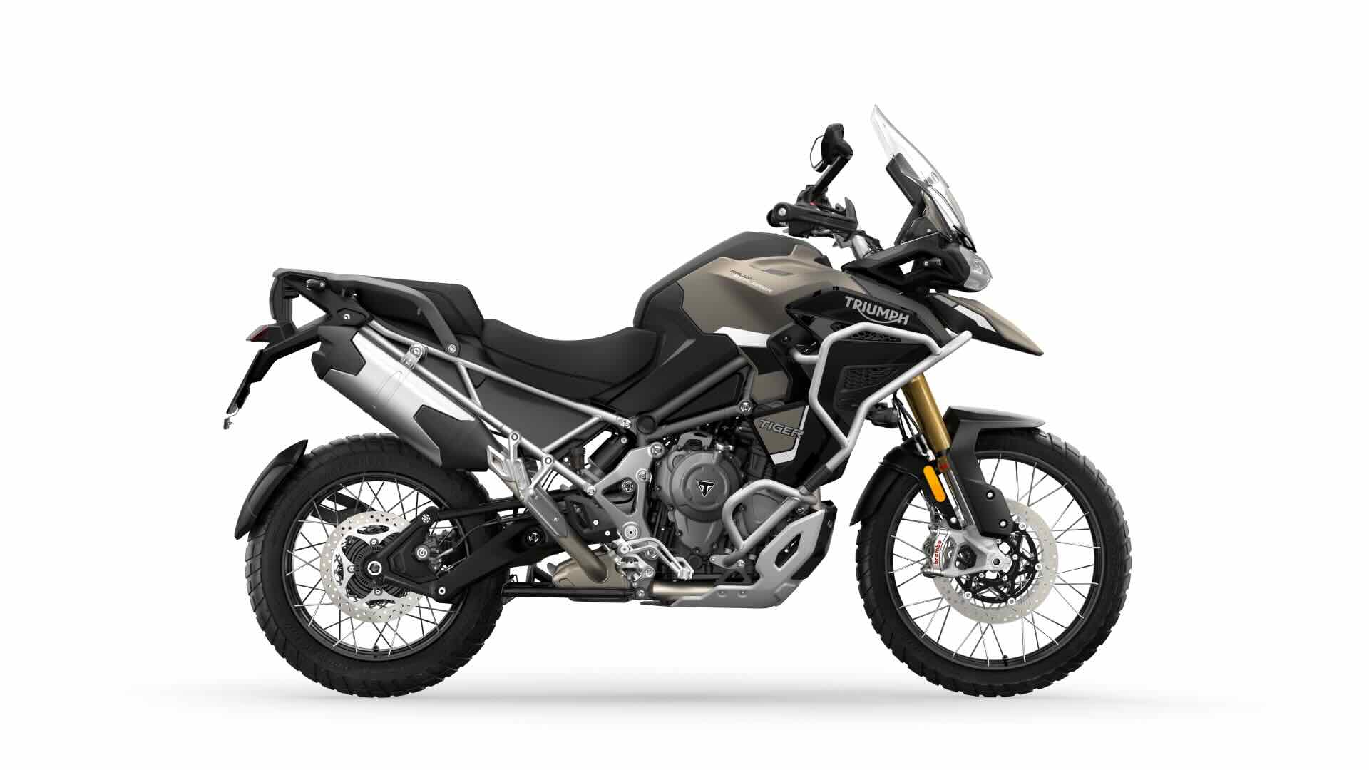 Infine, sulle Tiger 1200 GT Pro e GT Explorer, Triumph ha incrementato la capacità di discesa in piega e di inclinazione laterale, alzando leggermente la posizione delle pedane e avvicinandole alla moto.