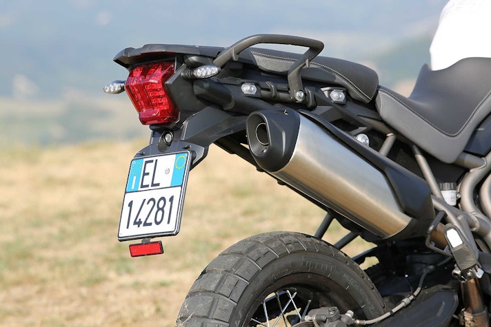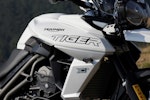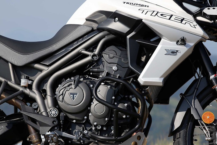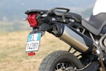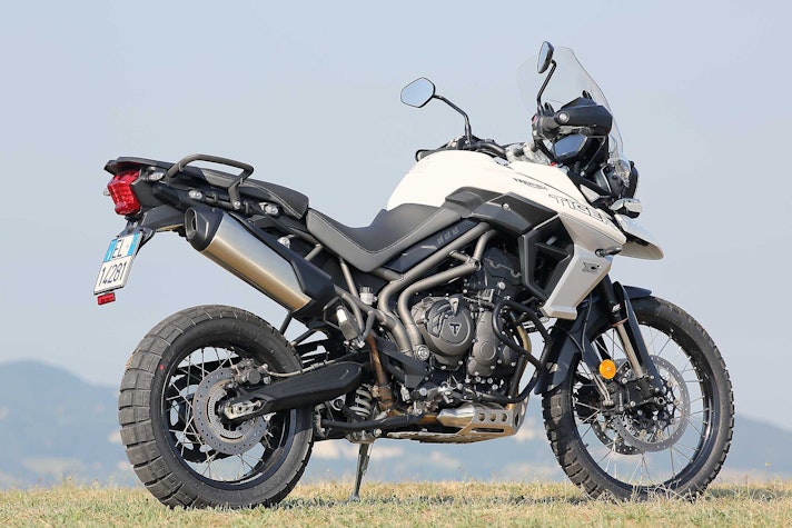La Tiger 800 XCA è l’unica tre cilindri del confronto. Architettura, quella del Triple a cui Triumph è ovviamente molto affezionata. La Triumph Tiger 800 si è aggiornata quest’anno senza dare troppo nell’occhio perché il design non è stato stravolto. In realtà la enduro inglese offre contenuti tecnologici molto avanzati ma non solo; la promessa è quella di una efficacia ancora migliore in fuoristrada. Sarà vero? Il tre in linea inglese è anche il più piccolo di cilindrata 800 centimetri cubi tondi tondi che non gli impediscono tuttavia di erogare 95 cv con una coppia di 79 Nm.Anche per lui ci sono differenti mappature che cambiano carattere erogazione e livello di intervento dei controlli elettronici, compresa la modalità off road che lascia le briglie un po’ più sciolte per la guida in fuoristrada. Come BMW anche Triumph ha scelto la ruota posteriore da 17 pollici, le escursioni delle ruote anteriore e posteriore sono da 220 e 215 mm, mentre la sella varia da 840 a 860 mm. Queste misure fanno di Triumph la più stradale tra le avventurose? Staremo a vedere. Intanto l’inglese sfoggia uno dei pesi dichiarati più contenuti: 208 kg a secco (nella tabella sotto trovate il peso rilevato con il pieno). Il serbatoio è da 19 litri. RIDE Uscendo dalla sede di Triumph Italia e affrontando le prime due rotonde avevo già ben chiara la collocazione della Tiger 800 XCA in questa comparativa. Sospensioni ben sostenute, poco trasferimento di carico, maneggevolezza di gran livello e un motore -il triple- con una erogazione pastosa ma anche più appuntita degli altri. Ero al cospetto di una ottima moto stradale “travestita” da enduro. E in effetti è stato proprio così: la Tiger 800 XCA offre a chi la affronta con il piglio del viaggiatore un grande supporto. A livello di compattezza e agilità se la gioca ad armi pari con BMW, ma la posizione di guida della Triumph ci è piaciuta leggermente di più e dove l’enduro di Hinckley esce vincente a braccia alzate è nella protezione aerodinamica, la migliore di tutti secondo piloti di differenti altezze. La sella bassa e peso contenuto la rendono approcciabile anche a che non ha molta confidenza, ma il triple è un vero peperino e quando c’è da spingere la Tiger 800 XCA riesce a convincere.