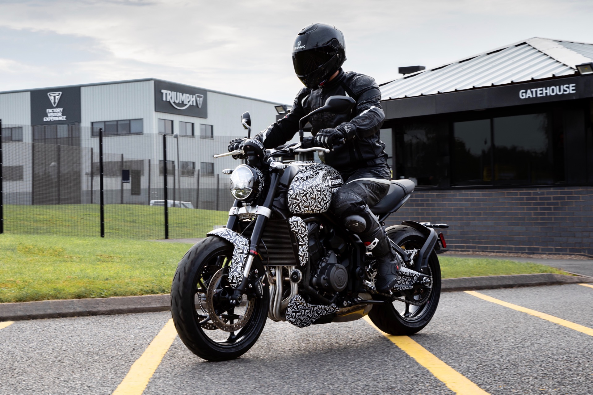 Per il momento dal quartier generale non trapela altro. A occhio, escludendo che il tester immortalato abbia il fisico di Hulk Hogan, viene da pensare che la Triumph Trident abbia dimensioni piuttosto compatte. Analizzando le immagini si possono notare poi la forcella upside down con una massiccia piastra in lega leggera, le piccole frecce a Led, i freni con pinze Nissin e una strumentazione essenziale, che sovrasta un faro tondo di gusto classicheggiante. Ancora un po’ di pazienza e ne sapremo molto di più.