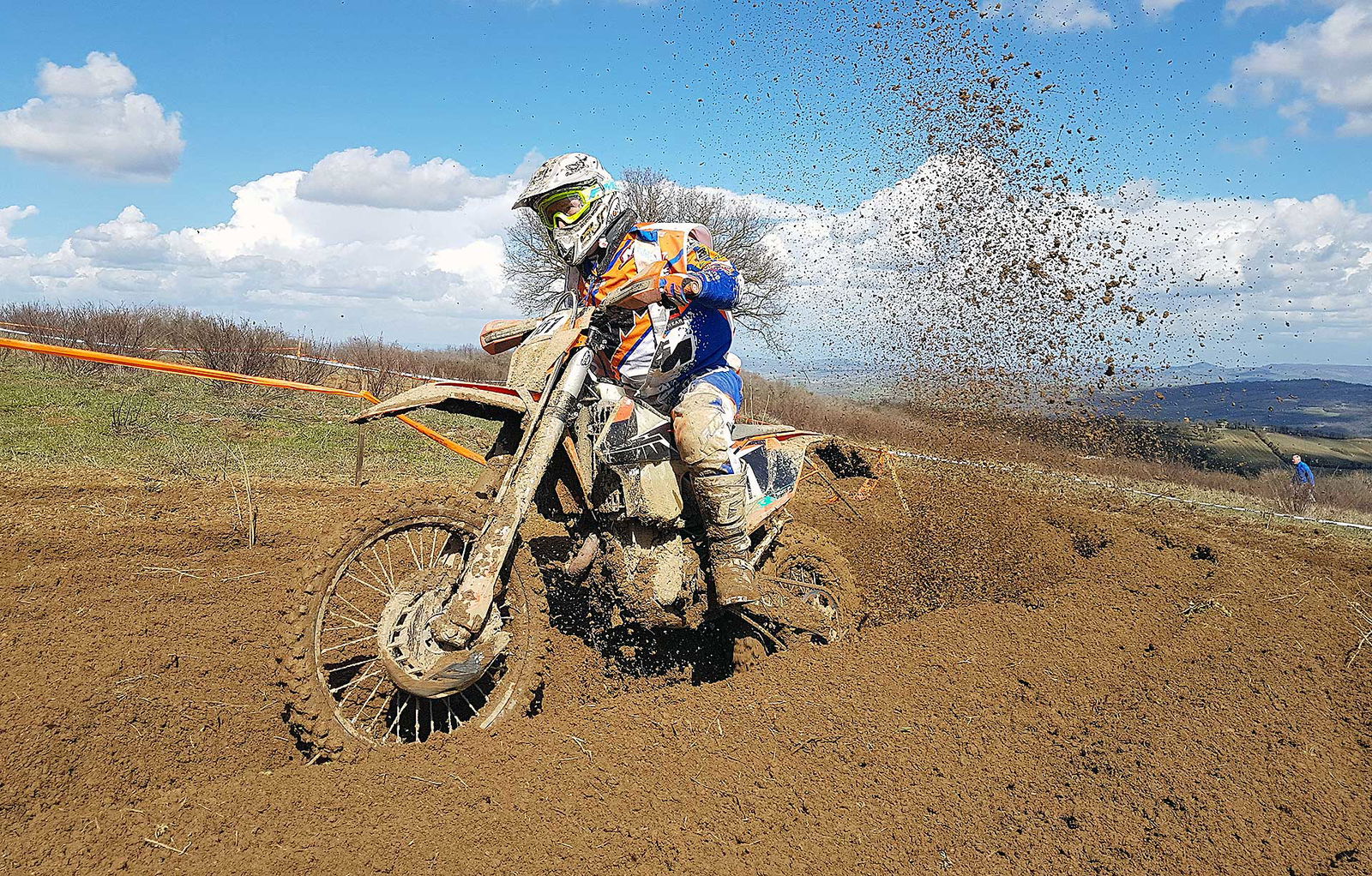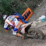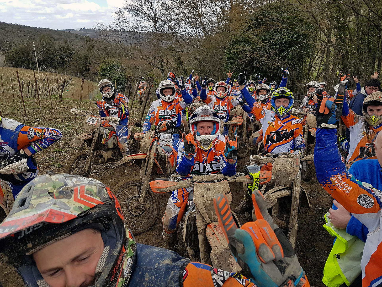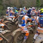 Questo è matto, direte voi. Forse sì, oppure visto che la prima gara del Trofeo Enduro KTM 2018 si è svolta a Montalcino (SI), la colpa è del famosissimo vino locale…Sì, avete letto proprio bene il titolo. Stavolta mi sono sentito per un attimo come il “nostro” più grande campione del fuoristrada. D’accordo, con le dovute “giga” proporzioni, qui non si parla di campionato del mondo, ne di motocross, ne tantomeno di un pilota vero! Ma la mia cazzata la dovevo dire, e per un momento domenica scorsa mi sono trovato nella stessa situazione di TC222 qualche anno fa, precisamente il GP di Svezia ad Uddevalla 2012. I più ferrati sull’argomento si ricorderanno che quella fu una trasferta dal magro bottino per l’oggi 9 volte campione del mondo.Ritiro nella prima manche e stessa sorte nella seconda, quando il Tonino nazionale finì fuori pista in seguito ad un errore e la sua moto rimase intrappolata nella morsa del fango, come se fosse nel cemento, senza nessuna speranza di riuscire a tirarla fuori e riprendere la gara. Ecco, a me è successa più o meno la stessa cosa nel cross test al primo giro. Entro in prova speciale bello convinto e con tutti i buoni propositi di fare un giro decente, ma mi accorgo subito che il terreno è insidioso ed è meglio non dare troppa confidenza. Alla quarta o quinta curva vedo in traiettoria un bel canale e mi ci infilo dentro deciso. Proprio quando ne vedo l’uscita, la moto mi si pianta dentro come se fossero le sabbie mobili.