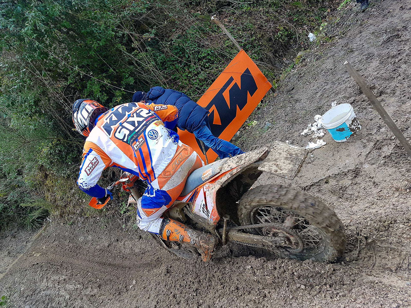 Questo è matto, direte voi. Forse sì, oppure visto che la prima gara del Trofeo Enduro KTM 2018 si è svolta a Montalcino (SI), la colpa è del famosissimo vino locale…Sì, avete letto proprio bene il titolo. Stavolta mi sono sentito per un attimo come il “nostro” più grande campione del fuoristrada. D’accordo, con le dovute “giga” proporzioni, qui non si parla di campionato del mondo, ne di motocross, ne tantomeno di un pilota vero! Ma la mia cazzata la dovevo dire, e per un momento domenica scorsa mi sono trovato nella stessa situazione di TC222 qualche anno fa, precisamente il GP di Svezia ad Uddevalla 2012. I più ferrati sull’argomento si ricorderanno che quella fu una trasferta dal magro bottino per l’oggi 9 volte campione del mondo.Ritiro nella prima manche e stessa sorte nella seconda, quando il Tonino nazionale finì fuori pista in seguito ad un errore e la sua moto rimase intrappolata nella morsa del fango, come se fosse nel cemento, senza nessuna speranza di riuscire a tirarla fuori e riprendere la gara. Ecco, a me è successa più o meno la stessa cosa nel cross test al primo giro. Entro in prova speciale bello convinto e con tutti i buoni propositi di fare un giro decente, ma mi accorgo subito che il terreno è insidioso ed è meglio non dare troppa confidenza. Alla quarta o quinta curva vedo in traiettoria un bel canale e mi ci infilo dentro deciso. Proprio quando ne vedo l’uscita, la moto mi si pianta dentro come se fossero le sabbie mobili.