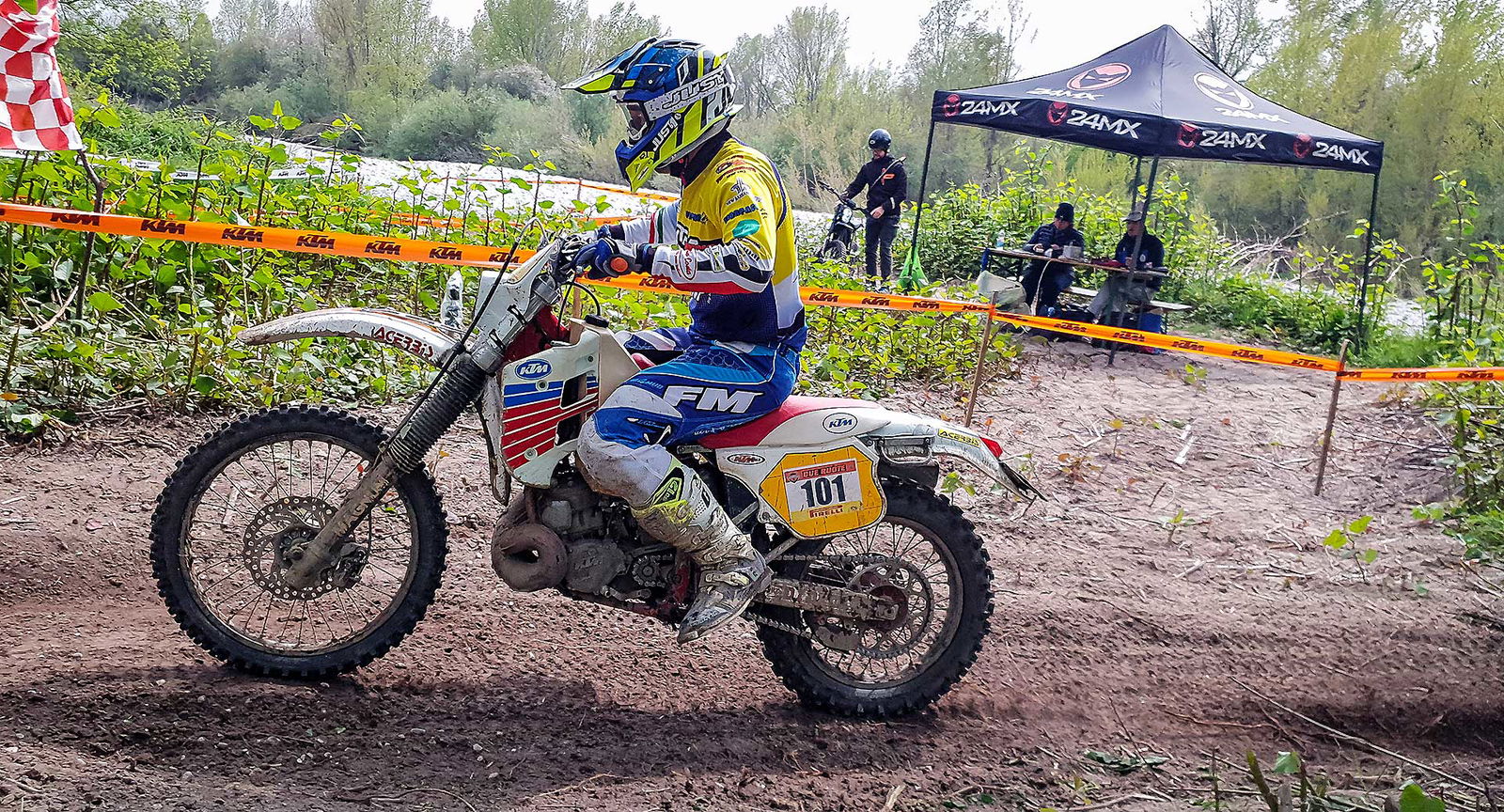 Ultima prova speciale, Enduro Test. Tra le fettucce che delimitano il tracciato di gara c’è Giovanni Sala. Nell’aria si sente ancora l’odore di miscela della 2t che è appena passata a cannone, segnando il miglior tempo assoluto. Una KTM 250 del 1990. No, non siamo ad una gara di moto d’epoca e nemmeno alla Valli Bergamasche dei tempi d’oro. Siamo a Manzano (UD) per la seconda prova del Trofeo Enduro KTM del 2019. Sembrerebbe un flashback bello e buono, ma in realtà “il Giò” è lì a bordo pista ad incitare i piloti alle prese con il fango ed i canali scavati nel terreno, e l’anzianotta signora Austriaca con qualche primavera sulle spalle se la viaggia che è un piacere nelle mani di un certo Vanni Cominotto.