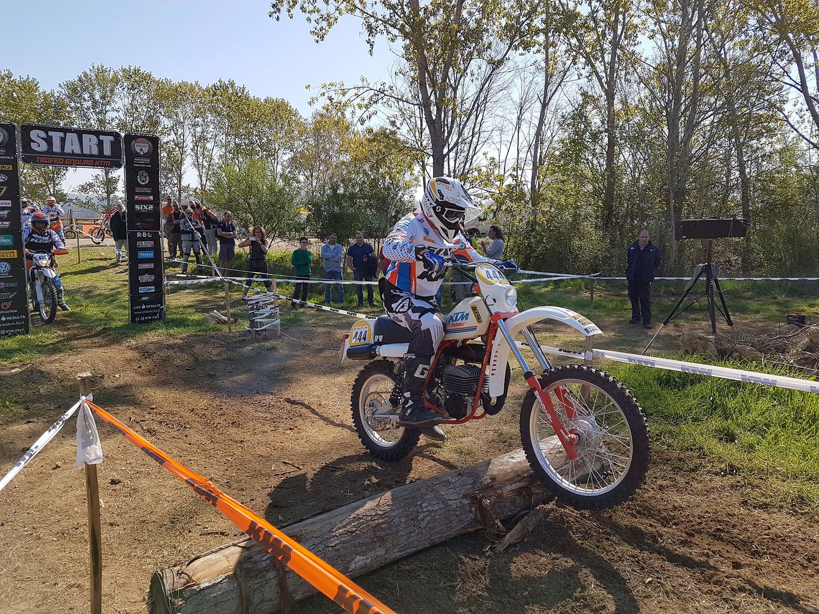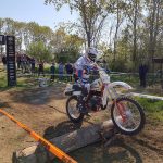 Arrivo solo la domenica mattina, quindi sveglia alle 5.30 per svolgere in tempo le operazioni preliminari e mettere la moto nel parco chiuso, e nessuna possibilità di andare a vedere le prove speciali. Mi dicono che nel cross test sono stati piazzati dei tronchi qua e là, il che mi “rassicura” sul fatto che avrò le mie difficoltà nell’affrontarli, visto che per abitudine evito accuratamente di passarci sopra quando me ne trovo qualcuno davanti! In pratica all’inizio della prova speciale ne sono stati posizionati due alla distanza di una moto, con il rischio di rimanerci incastrati in mezzo e perdere un sacco di tempo. C’è subito un trucchetto però, che scopro vedendo gli altri piloti che partono davanti a me. Infatti superato il primo, è sufficiente spostarsi a sinistra dove c’è abbastanza spazio per sfilare il secondo e quindi evitare di accartocciarsi davanti a tutti. Malizie dell’endurista improvvisato.. Morale, al secondo giro di gara i due tronchi sono stati tolti. Grazie organizzatori!