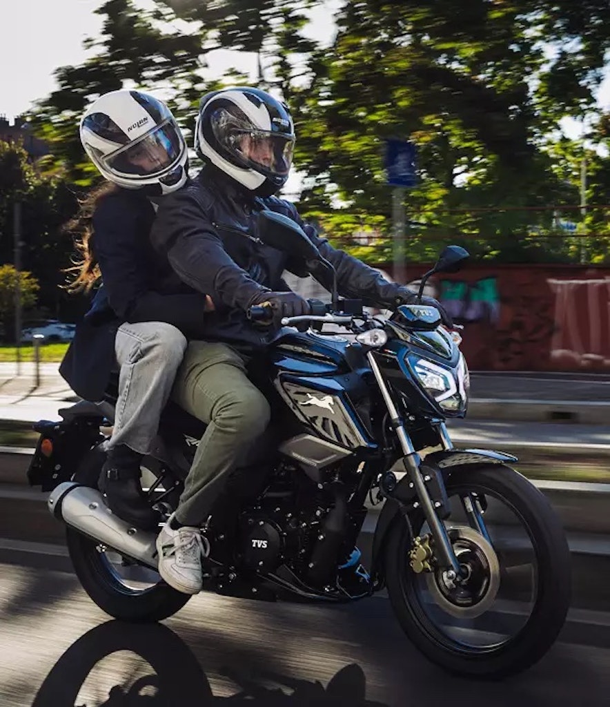 TVS Raider 125 è la naked pensata per studenti, pendolari e neopatentati. La sua dotazione tecnica si avvale di un gruppo ottico full LED, strumentazione LCD digitale e sistema di frenata combinata Syncro SBT. Il modello è mosso da un monocilindrico da 125 cc raffreddato ad aria e olio, in grado di sviluppare 11,2 CV a 7.500 giri/min e una coppia massima di 11,3 Nm a 6.000 giri. Numeri pronti a offrire una guida semplice e fluida, adatta anche a chi si avvicina per la prima volta al mondo delle due ruote a motore. La gamma colori comprende le tonalità Black, Red, Blue e Yellow. Da non sottovalutare, infine, i 5 anni di garanzia e i 2 di assistenza stradale compresi nel prezzo.