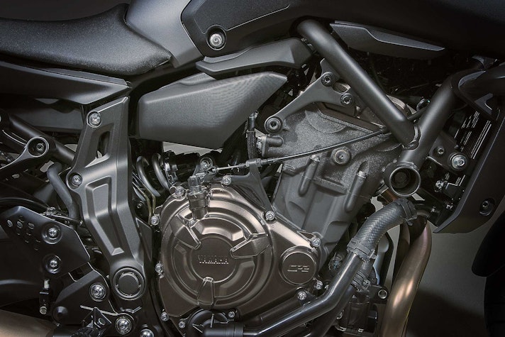 La principale novità della Yamaha MT-07 my 2018 è il design, che si ispira alla più sportiva MT-09, introducendo nuovi elementi che però, come detto, non sconfessano il passato. Cambia il frontale, più strutturato e importante; è diverso il serbatoio, come anche le prese d’aria. La posizione di guida è stata modificata per essere compatibile con le forme del maggior numero possibile di piloti: in particolare è stata ridisegnata la sella, che ora si spinge lungo i fianchi del serbatoio.Le sospensioni, con escursione di 130 mm anteriore e posteriore, sono state riviste nella taratura nel segno della sportività; l’ammortizzatore dispone della possibilità di regolare il precarico molla, una utile novità.Invariato il motore bicilindrico in linea di 698 cc con fasatura a 270° e scoppi irregolari; la potenza tocca quota 74,8 cv (55 kW) a 9000 giri/min, la coppia 68 Nm a 6500 giri. Il peso dichiarato in ordine di marcia è di 182 kg (164 a secco, come il modello precedente). Tre le colorazioni: Night Fluo, Yamaha Blue e Tech Black, con consegna a partire da marzo 2018.