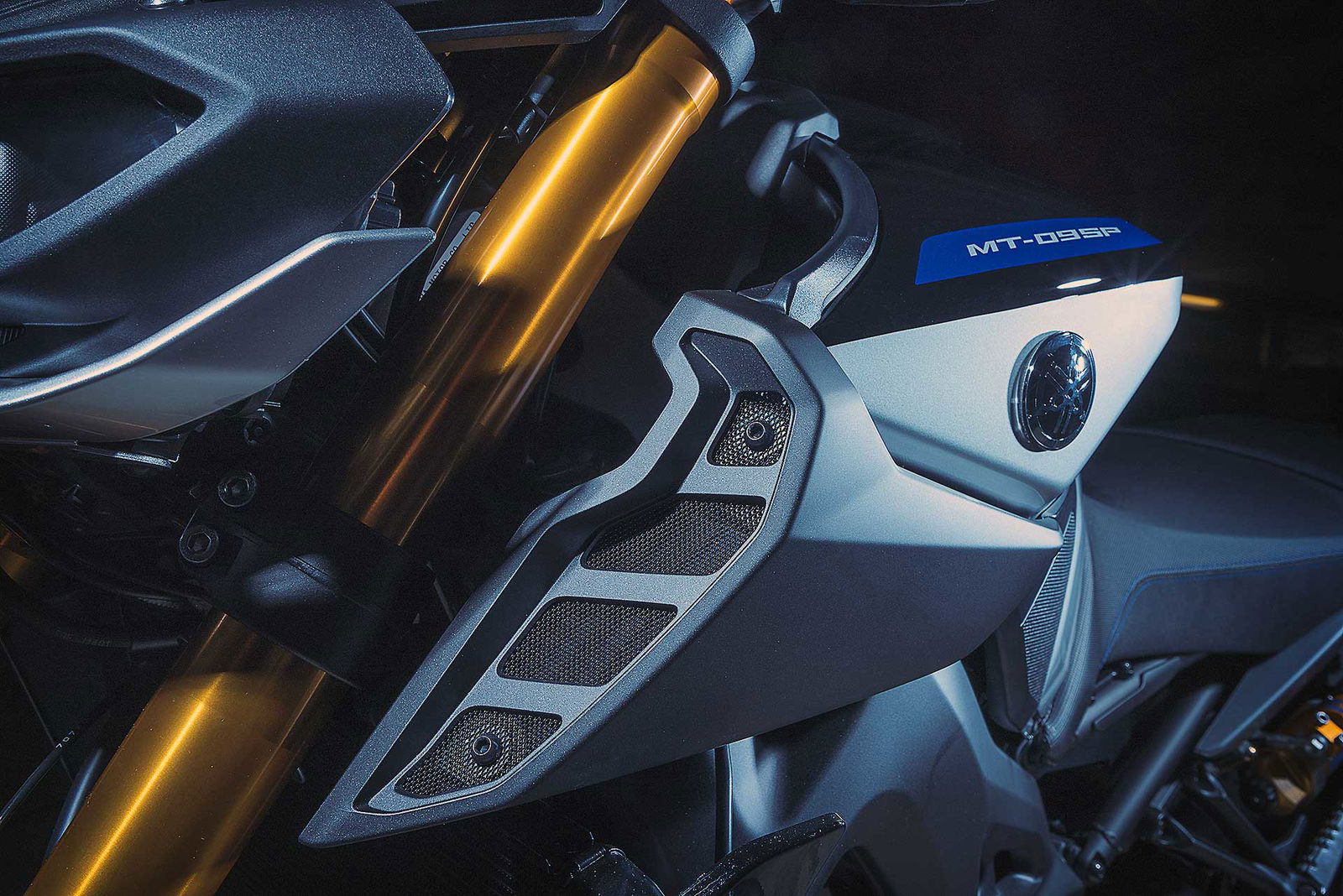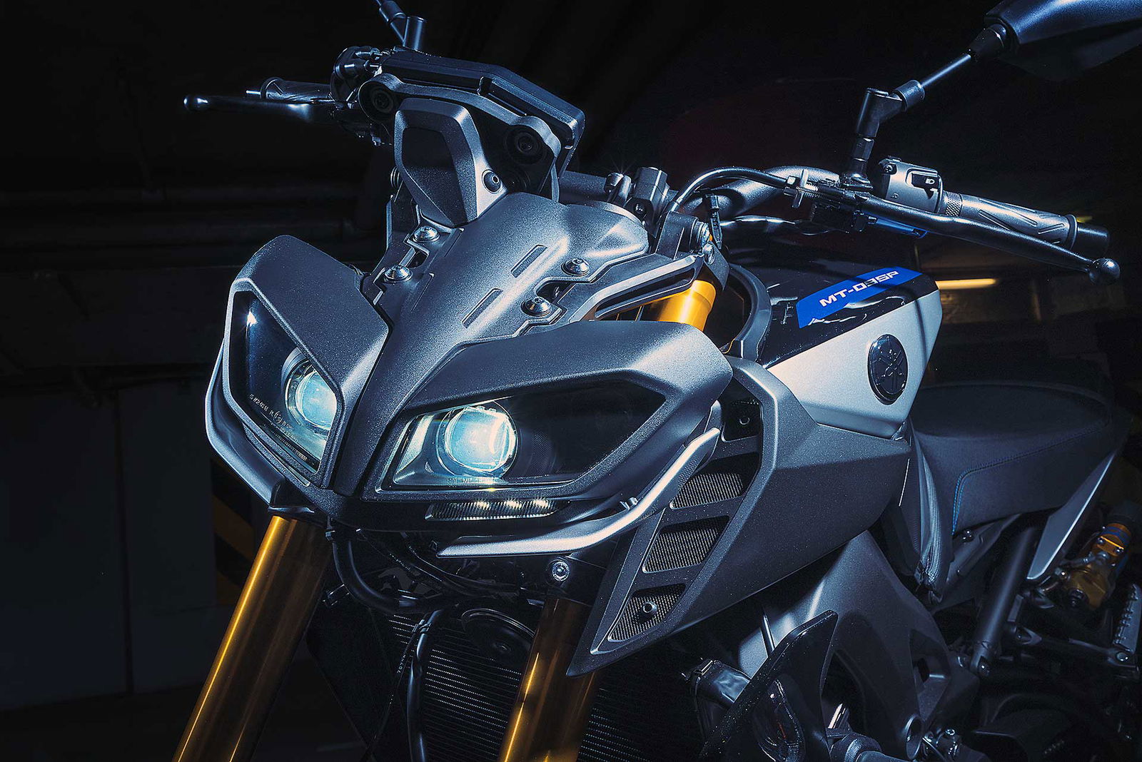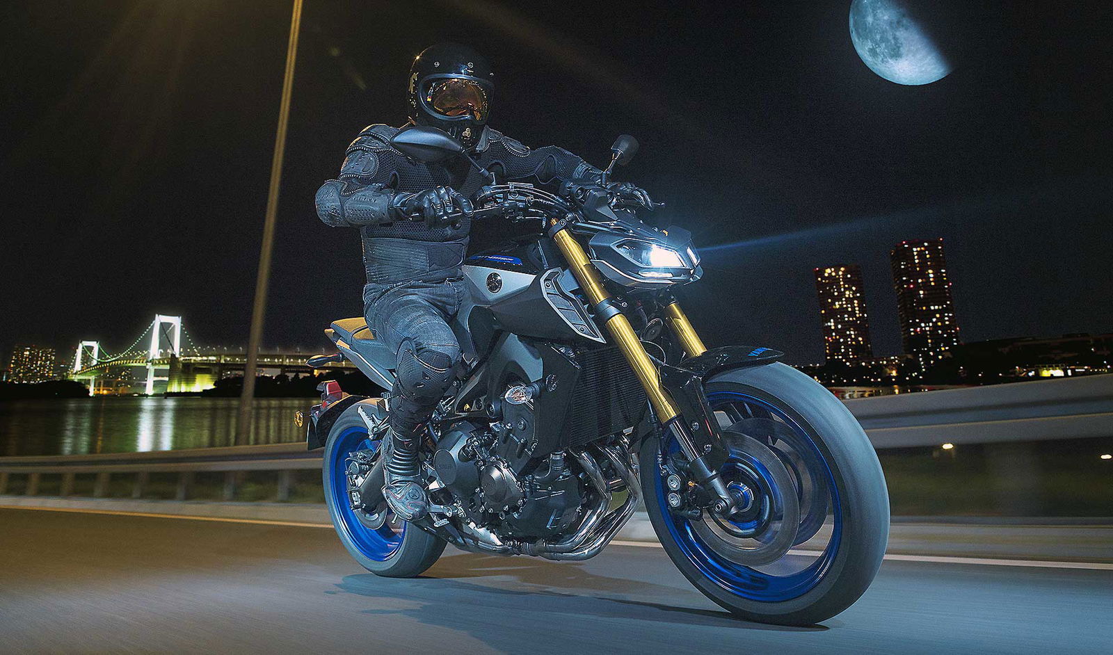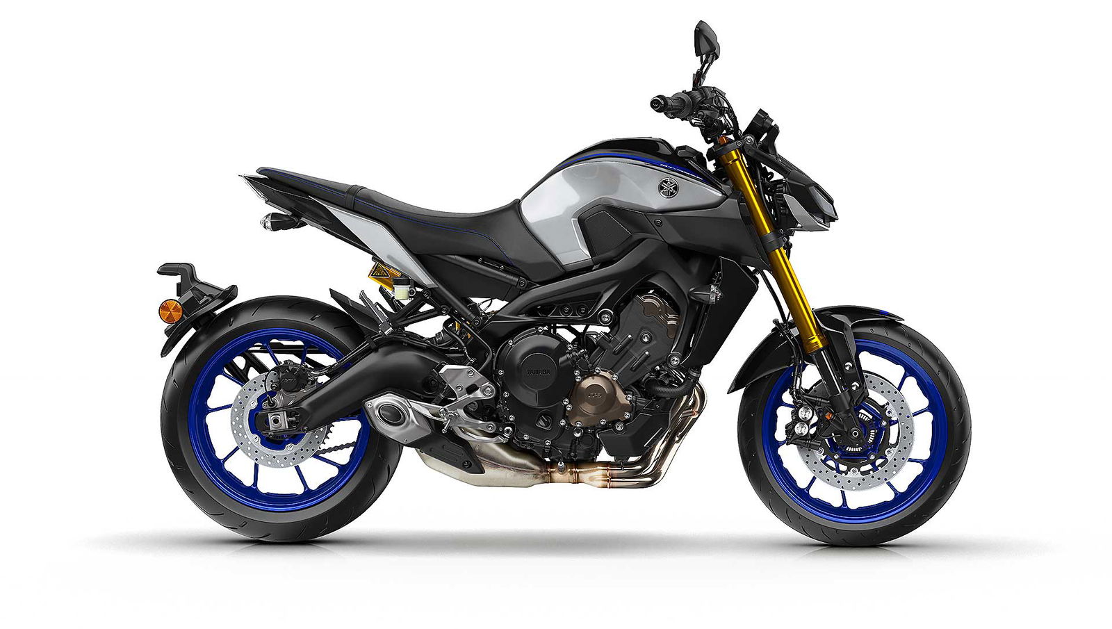 La gamma SP si arricchisce con l’arrivo della versione più sportiva della MT-09. Sempre nel nome del “Dark Side of Japan”, che ha visto nella primavera scorsa il debutto della MT-10 SP (leggi la prova). La MT-09, lanciata nel 2013 e capace di superare quota 48.000 unità vendute – la famiglia MT nel complesso ha infranto la barriera dei 150.000 pezzi – è un’ottima base di partenza, su cui sono state innestate le prelibatezze tipiche dei modelli SP.Si parte forte con forcella e ammortizzatore Ohlins regolabili, in grado di fare la differenza anche grazie all’inconfondibile finitura dorata. Sul fronte cromatico spicca la combinazione scelta per la MT-09 SP, che accosta nero e grigio metallizzato, per cedere al fascino del blu elettrico sui cerchi a dieci razze. Per manubrio, leve e maniglia per il passeggero la scelta è caduta sul nero. Bianco su nero, invece, per le informazioni visualizzate dal pannello LCD della strumentazione.Torniamo alle sospensioni. La forcella è regolabile nella sezione idraulica in compressione e in estensione, oltre che nel precarico della molla. L’ammortizzatore è stato sviluppato da Ohlins su specifiche Yamaha: oltre a disporre del comodo controllo remoto per la regolazione, può essere personalizzato ulteriormente nella risposta, acquistando tra gli accessori originali Yamaha le molle specifiche.