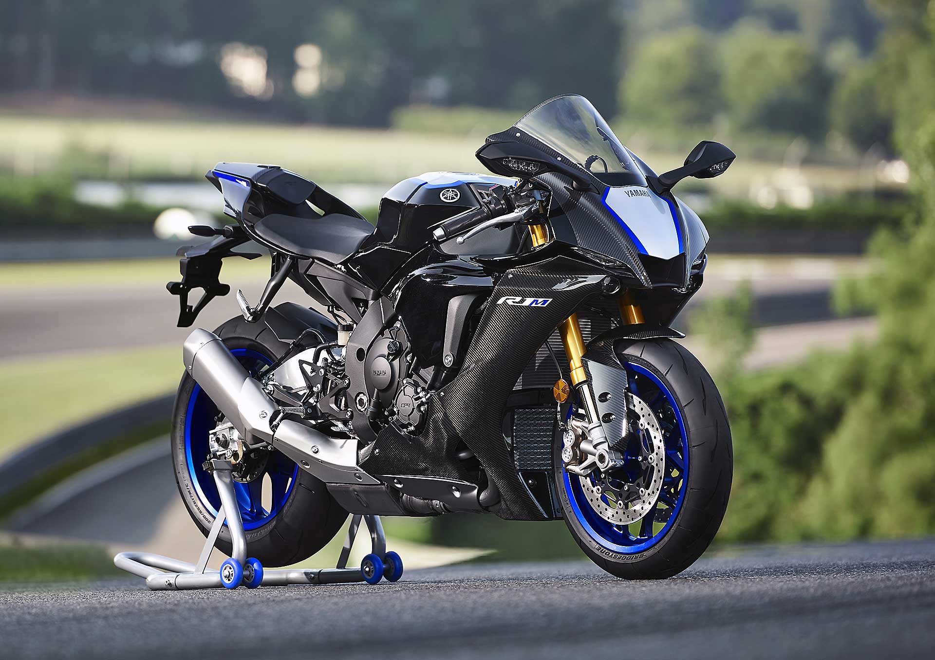 Le stesse novità meccaniche ed elettroniche appartengono ovviamente anche alla R1 M che però può vantare anche evoluzioni ciclistiche più consistenti con l’arrivo di una forcella Öhlins ERS NPX pressurizzata. Carena, cupolino e codone sono ora interamente in carbonio. Confermato invece il telaietto in magnesio.