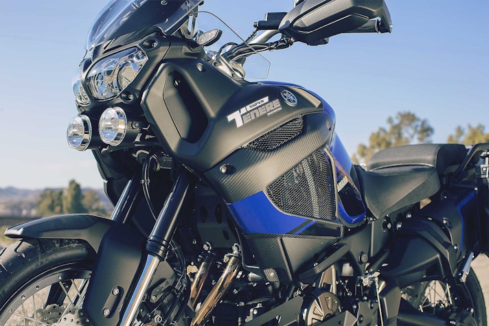 La new entry più vistosa nella dotazione di serie della Raid Edition sono due borse laterali in alluminio da 37 litri ciascuna, con gli angoli protetti da inserti in tecnopolimeri. In alluminio è anche l’estesa piastra paramotore con alette laterali mentre a proteggere il pilota dall’aria pensano invece un parabrezza maggiorato e deflettori laterali. Altri segni distintivi sono i faretti supplementari che danno un look dakariano al frontale e i fianchetti laterali in carbonio, che ben si sposano con le due colorazioni disponibili per la carrozzeria: la tinta sociale Yamaha Blue o il grintoso Tech Black. Il serbatoio ha una capacità di ben 23 litri e garantisce una notevole autonomia in ogni condizione.