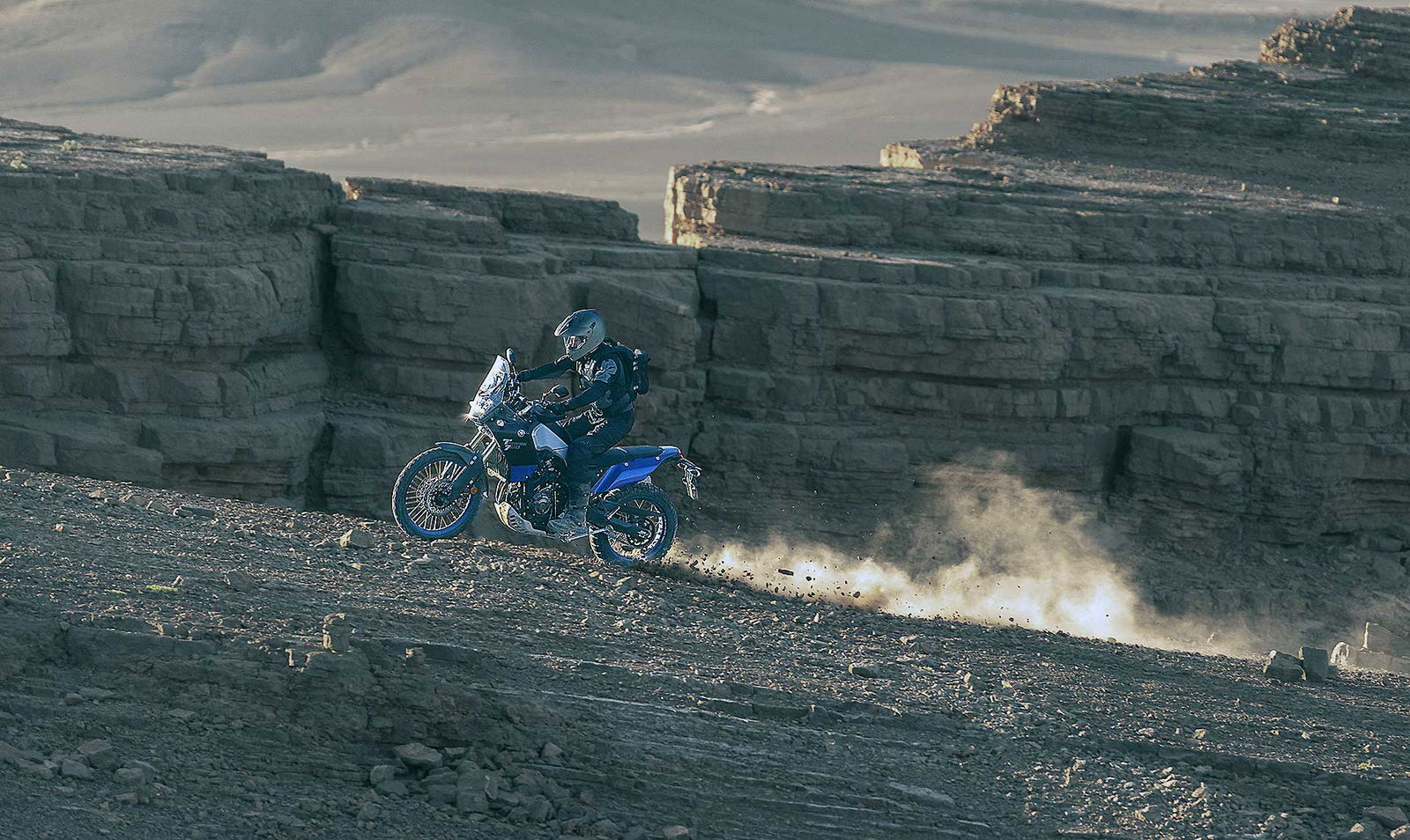 Yamaha Ténéré 700 si ispira alle suggestioni Africane e Sudamericane, teatro delle più importanti gare rallystiche. Lo fa con scelte stilistiche chiare: nessun accessorio inutile per lei, ma solo particolari tecnici che non aumentino il peso e che favoriscano la guida in ogni condizione. Proprio su questi terreni la Yamaha Ténéré 700 è stata sviluppata e deliberata da piloti come il plurivincitore della Dakar Stéphane Peterhansel, i piloti dell’Official Yamalube Yamaha Rally Team Adrien van Beveren e Rodney Faggoter, senza dimenticare il nostro Alessandro Botturi.DNA OFF ROAD