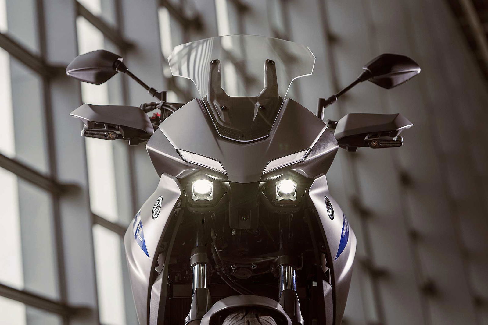 Le novità più evidenti riguardano la linea e in particolare il frontale. Il cupolino ha superfici più levigate e tagli più netti e ospita nuovi fari Twin Eyes con le luci di posizione separate rispetto ai proiettori, tutti a LED, così come le frecce. Il risultato è una firma luminosa particolare, che renderà la moto facilmente riconoscibile al buio. Inedito è anche il disegno del parafango anteriore, del parabrezza, ora regolabile in altezza con una sola mano su un’escursione di oltre 60 mm, e dei paramani. Questi ultimi sono montati su un nuovo manubrio, più largo di 34 mm, mentre a completare il ponte di comando c’è un nuovo schermo LCD in negativo.