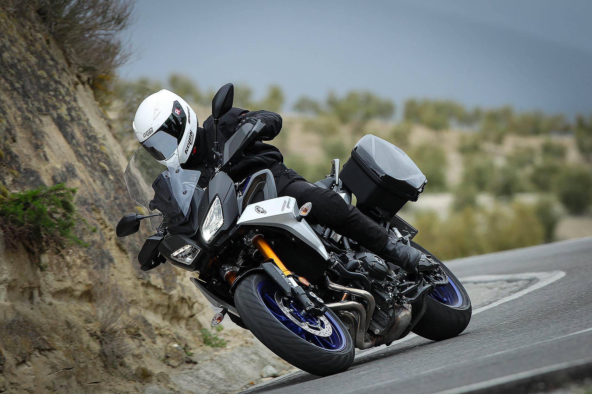 Se sul telaio in alluminio, materiale di cui i costruttori giapponesi detengono la maggior competenza, c’è poco da dire è proprio attorno al motore che il progetto Tracer prende forma. Il tre cilindri da 847 centimetri cubi ha il valore giusto di potenza per la guida stradale – 115 cavalli – e sposa bene il peso di 215 kg di una moto che rientra nel “magico” cerchio del equilibrio motociclistico stradale.GT per i passistiIl modello Gran Turismo affianca la versione standard e si distingue per un allestimento che a conti fatti non necessita di accessori aggiuntivi. Di serie borse laterali, manopole riscaldabili, cambio assistito di quick-shift, strumentazione TFT, cruise control e forcella completamente regolabile.I due modelli condividono il nuovo forcellone più lungo di 60 mm che aumenta l’interasse fino a quota 1.500 mm, il manubrio più stretto, il nuovo parabrezza regolabile in altezza di 50 mm e il pacchetto elettronico D-mode che gestisce la potenza su tre livelli – A, B e standard – il controllo di trazione disinseribile su due livelli e la frizione con sistema anti-saltellamento RIDE Affronto il test con la consapevolezza di trovare innanzitutto un amico caro. Il tre cilindri giapponese è un buon punto di partenza, perché ha tutti gli elementi per districarsi bene tra il turismo di coppia e la guida di buon passo da single.Persistono vibrazioni sul manubrio e pedane accompagnate da una rumorosità meccanica e di scarico evidenti ai regimi più alti. Un scotto da pagare ricambiato da prestazioni mai sottotono. Gli innesti rapidi delle marce sono assistiti dal quick-shift in salita che annulla il leggero sforzo nell’inserire i rapporti, e il tutto va a braccetto con coppia ed elasticità.