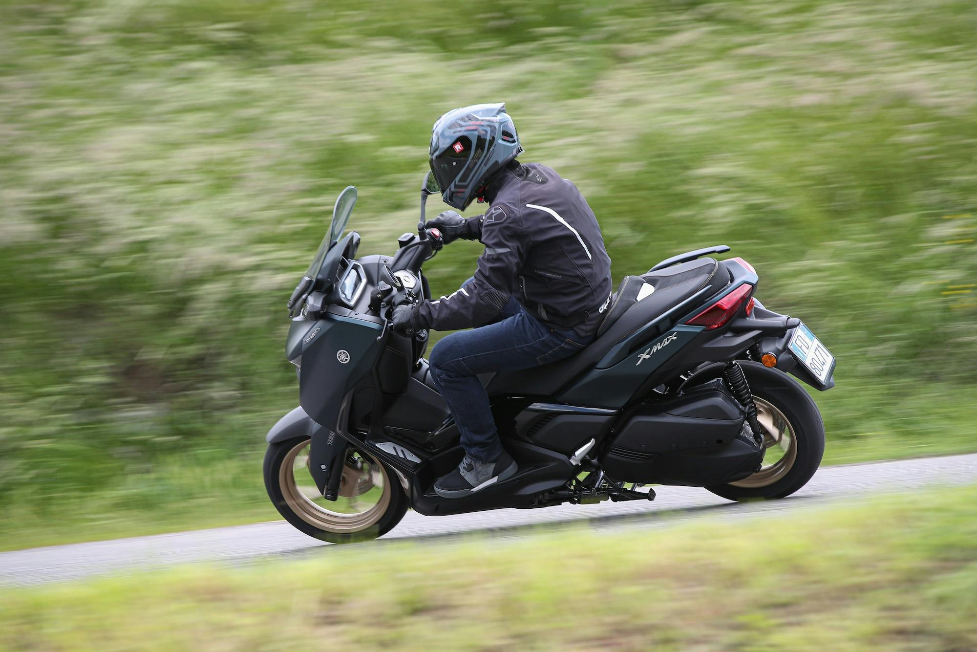 Il paradosso per uno scooter? Guidarlo come una moto. Lasciata la città per le colline della Brianza e poi del triangolo lariano, il nuovo Yamaha Tech Max 300 porta a ragionare con la testa del motociclista, concentrandosi sulla guida e dimenticando di essere in sella a uno scooter. Il comportamento dinamico, infatti, è così efficace da lasciare spazio al divertimento e persino a qualche emozione! Tra le curve il nuovo Tech MAX dà il meglio: rapido nei cambi di direzione, stabile in staccata, efficace in percorrenza con il solo limite del cavalletto centrale che striscia sull’asfalto, è uno scooter che offre di più di quanto sarebbe lecito aspettarsi. L’unico rammarico? La potenza del motore, che non è poca in assoluto bensì in base alle potenzialità di telaio e sospensioni. Per l’acquirente tipo probabilmente va bene così, anche perché questo permette di contenere i consumi di carburante, che si sono attestati sui valori dichiarato, con poco più di 3 litri per 100 chilometri, pur viaggiando spesso a gas spalancato e non lesinando partenze aggressive. Ha senso, quindi, la scelta di Yamaha di rinunciare al 400, che offriva accelerazione e velocità in più ma al prezzo di consumi superiori. A completare un quadro così positivo manca soltanto un po’ di protezione dall’aria: la parte superiore del casco e le spalle restano fuori dalla “bolla” creata dal parabrezza, quanto meno oltre i 100 km/h. Però si può provare ad alzarlo di 50 mm, cosa che durante il test non abbiamo fatto.