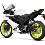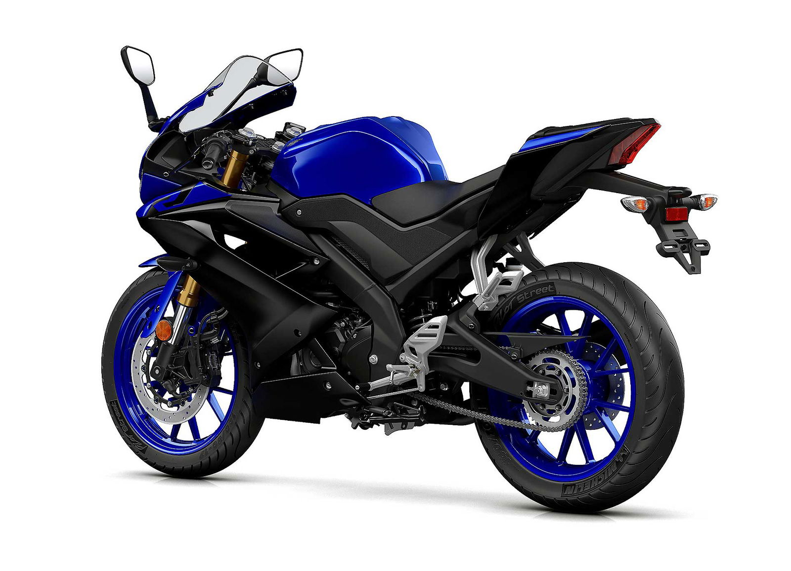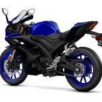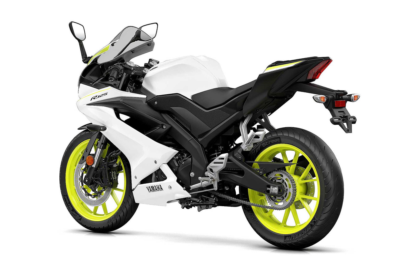 L’evoluzione ha toccato tutte le parti vitali della moto, a cambiare sono anche il telaio Deltabox (ridisegnato) il forcellone, lo pneumatico posteriore (ora portato a 140 in luogo del precedente da 130) e l’ergonomia. I manubri sono più aperti, le pedane riposizionate, le selle più imbottite.Attorno al nuovo “scheletro” Yamaha ha pensato anche a un nuovo vestito, la R125 cambia look con nuove sovrastrutture, (la carenatura ha una presa d’aria frontale che fa molto MotoGP) un nuovo serbatoio e la nuova strumentazione. Sarà presentata a Intermot e poi, ovviamente a EICMA 2018.