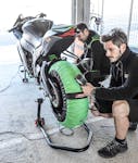 Nessuna concessione a comfort o chilometraggio, con prodotti di questo tipo si cercano solo performance e grip. Per questo motivo per il nostro time attack ci siamo affidati a un posteriore misura 200/60-17 su tutte le moto, mentre l’anteriore è il classico 120/70-17 ma con una sezione e un’impronta maggiorate. Con gomme di questo tipo si entra nel tecnico, la SC1 è un prodotto estremo e come tale va trattato. Il preriscaldamento prevede almeno un’ora in termocoperta a 90°. Dopo di che vanno verificate le pressioni a caldo che Pirelli ha fissato in 1.7 bar per il posteriore e 2.3 bar per l’anteriore. In queste condizioni si è in grado di spingere dalla prima curva.
