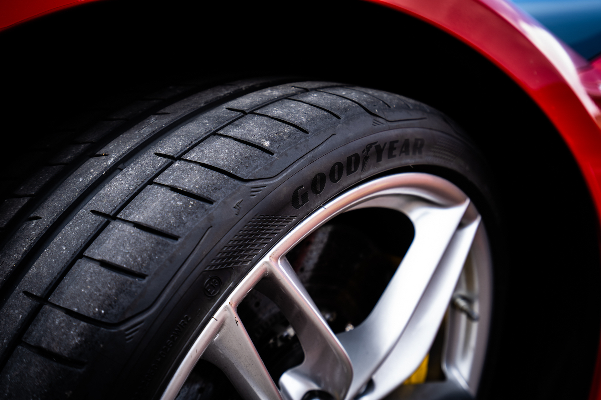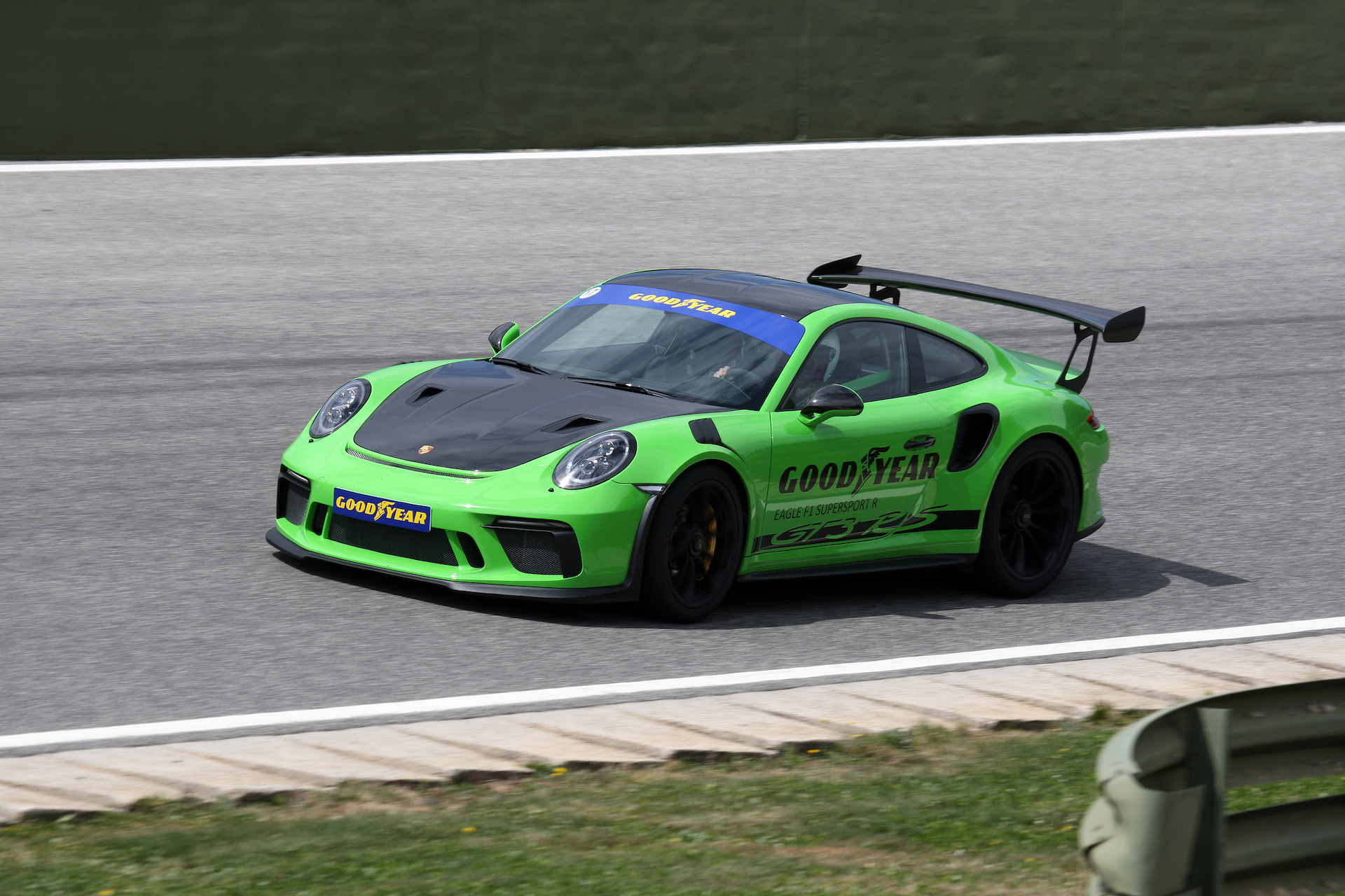 Dulcis in fundo, la Porsche 911 GT3 RS e quattro Goodyear Eagle F1 Supersport R. Pacchetto Weissach di alleggerimento incluso. Un oggettino che incute timore già da fermo, nel suo verde vipera, forte di 520 aspirati cv, capaci di urlare oltre gli 8.000 giri. I collaudatori sono chiari: “scalda bene le gomme prima di darci dentro e porta la frenata “nella” curva, senza lasciare troppo velocemente il pedale centrale”. Il teatro è la parte finale dell’Ascari, con un curvone parabolico a sinistra e una destra velocissima, condite con un paio di chicane. Capire dove finisce la magia della GT3 RS e dove inizia quella dei Supersport R è cosa quasi ultraterrena: di certo, la leggendaria precisione e la sensibilità di sterzo della 911 sono salve, anche grazie alle doti degli Eagle F1 Supersport. Resta da sciogliere il giudizio solo sulla resistenza all’usura: in queste occasioni, i giri concessi sono sempre, irrimediabilmente, troppo pochi.