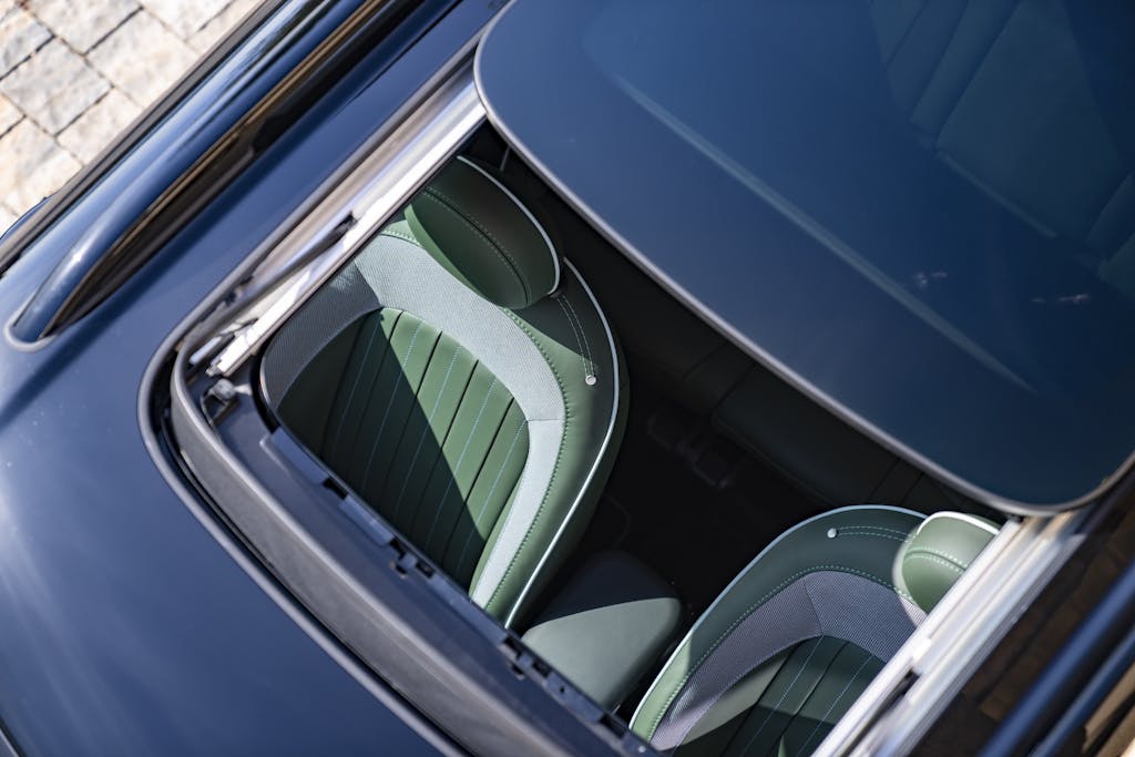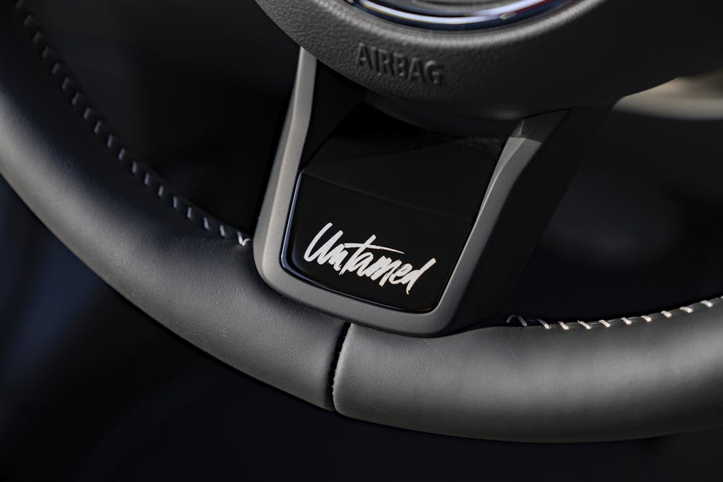 Nell’abitacolo prevalgono le tonalità di verde e di blu: in particolare il colore Highland Green è abbinato a cuciture a contrasto blu e verdi sui sedili sportivi MINI Yours Leather Lounge. Non manca la scritta “Untamed” visibile di notte all’interno dell’auto, un tocco di ulteriore personalizzazione. La stessa scritta compare sui sedili e sul volante, mentre persino i tappetini in velluto riportano un disegno dedicato. La dotazione di serie è particolarmente ricca, con i fendinebbia LED, il