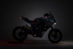La Honda CB4 X Concept è a modo suo Made in Italy. A disegnarla è stato infatti Valerio Aiello con la collaborazione di un team di giovani designer presso la struttura Honda R&D Europe, con base a Roma. È stata la sua matita a schizzare l’aggressivo cupolino che pare pronto a caricare a testa bassa e a lanciare uno sguardo torvo verso la strada con i fari a LED separati dalle luci diurne. Le sovrastrutture hanno tagli netti e un’aria massiccia, cui si contrappone un codino esile ed essenziale, sorretto da un leggero telaietto in alluminio. Minimalista è anche il ponte di comando, con tutta la strumentazione raccolta in un moderno display digitale.